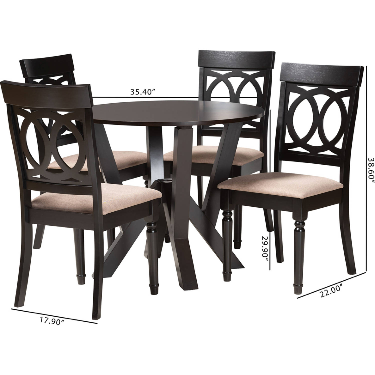 Baxton Studio Angie 5 Piece Dining Set in Dark Brown Wood & Sand Fabric