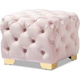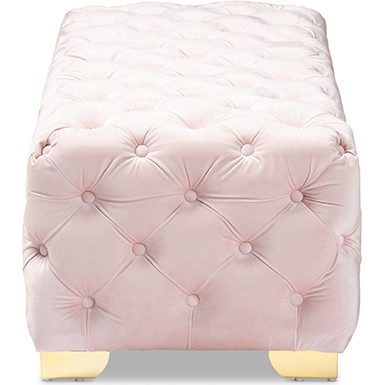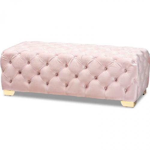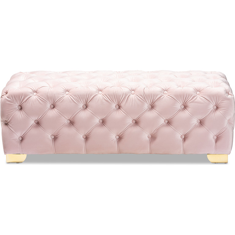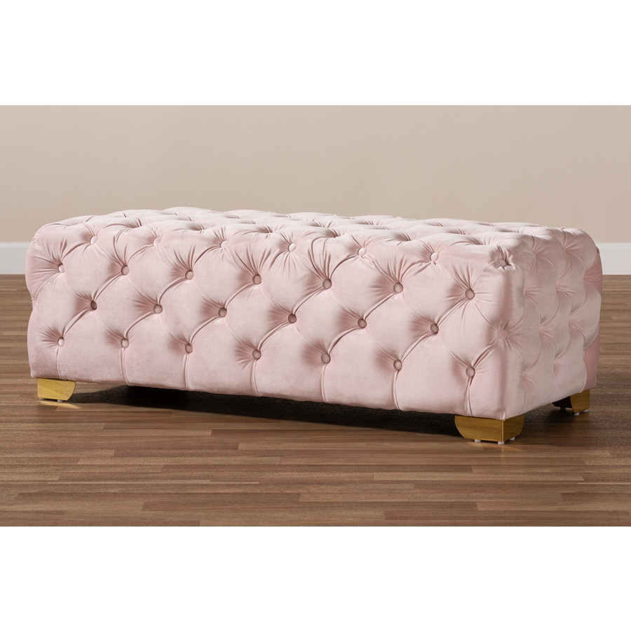 Baxton Studio TSFOT028-Light Pink/Gold-Otto Avara Bench Ottoman Tufted Light Pink Velvet & Gold Metal
