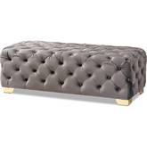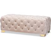 Baxton Studio Avara Bench Ottoman in Tufted Light Pink Velvet & Gold Metal