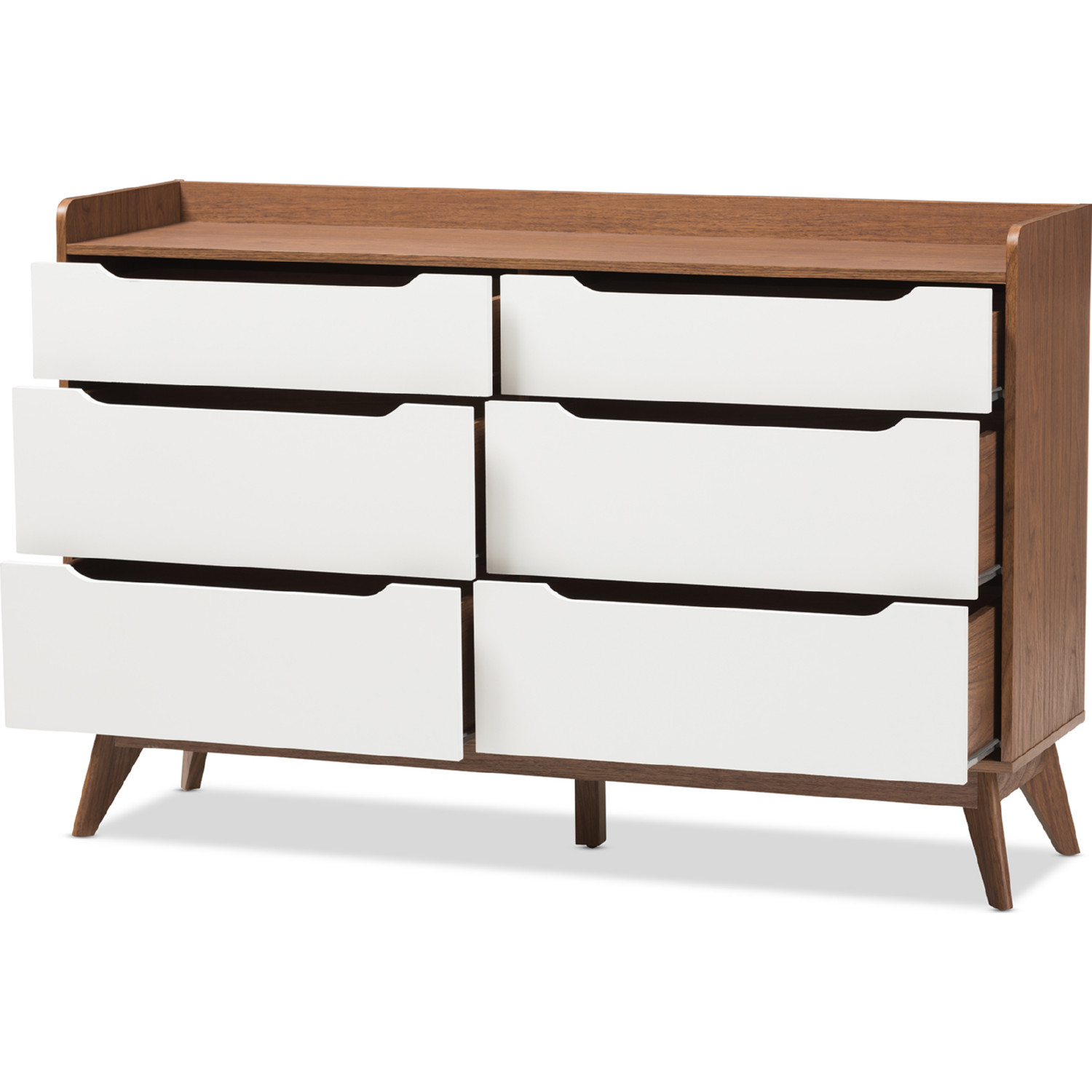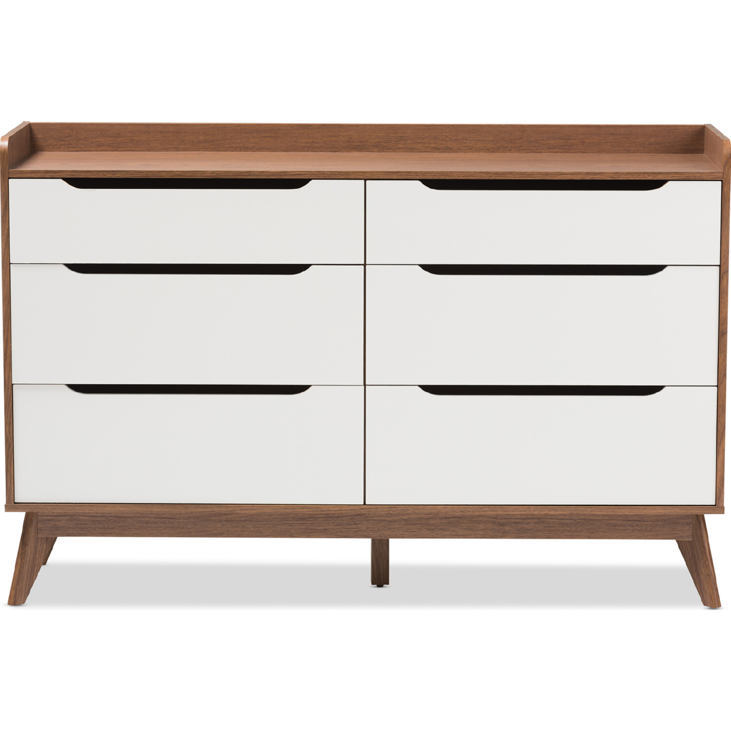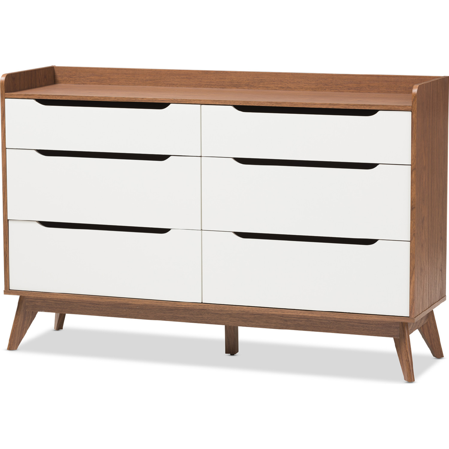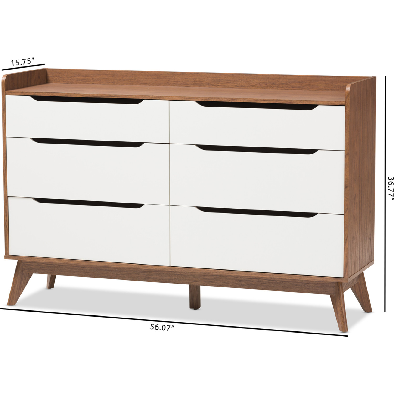 Baxton Studio Brighton 6 Drawer Storage Dresser in White & Walnut Finish