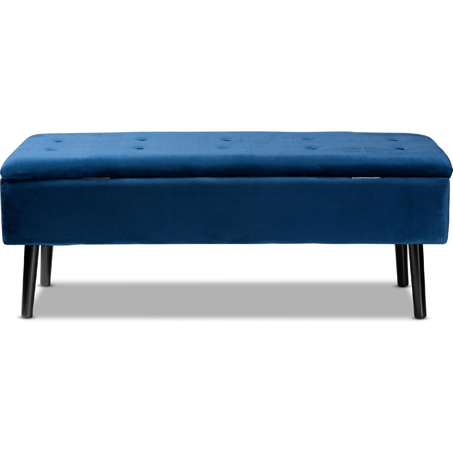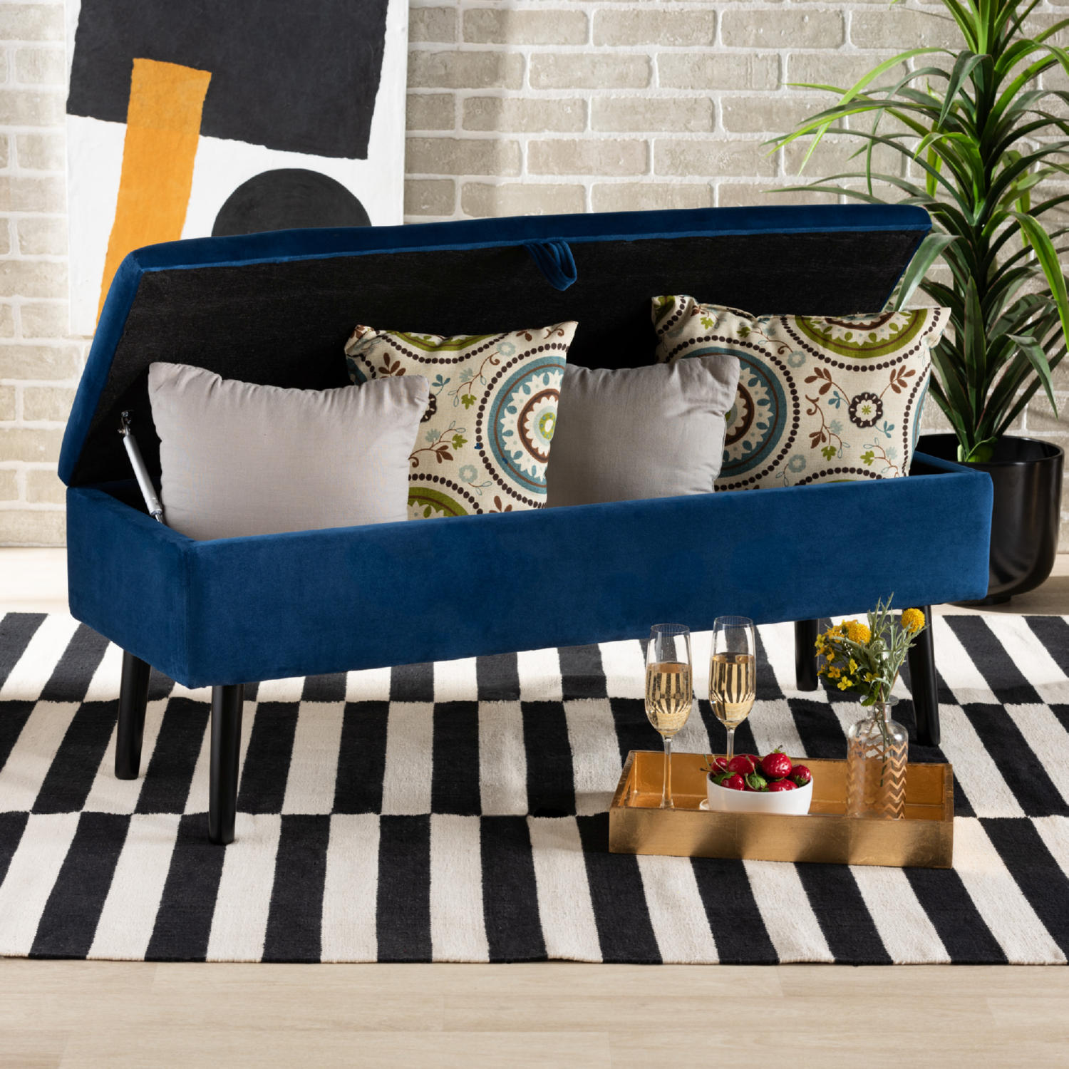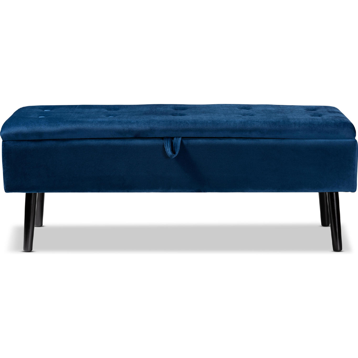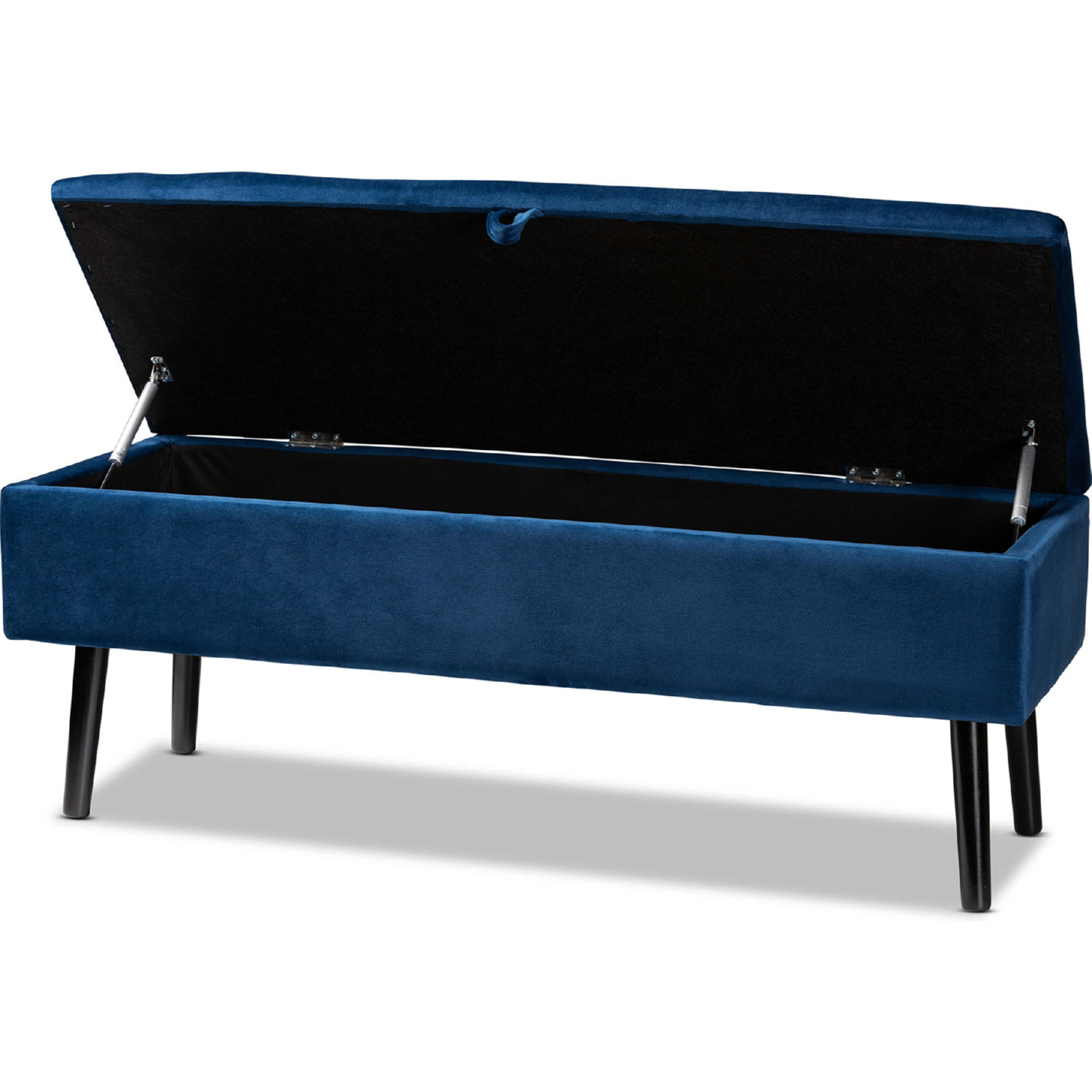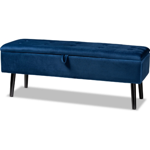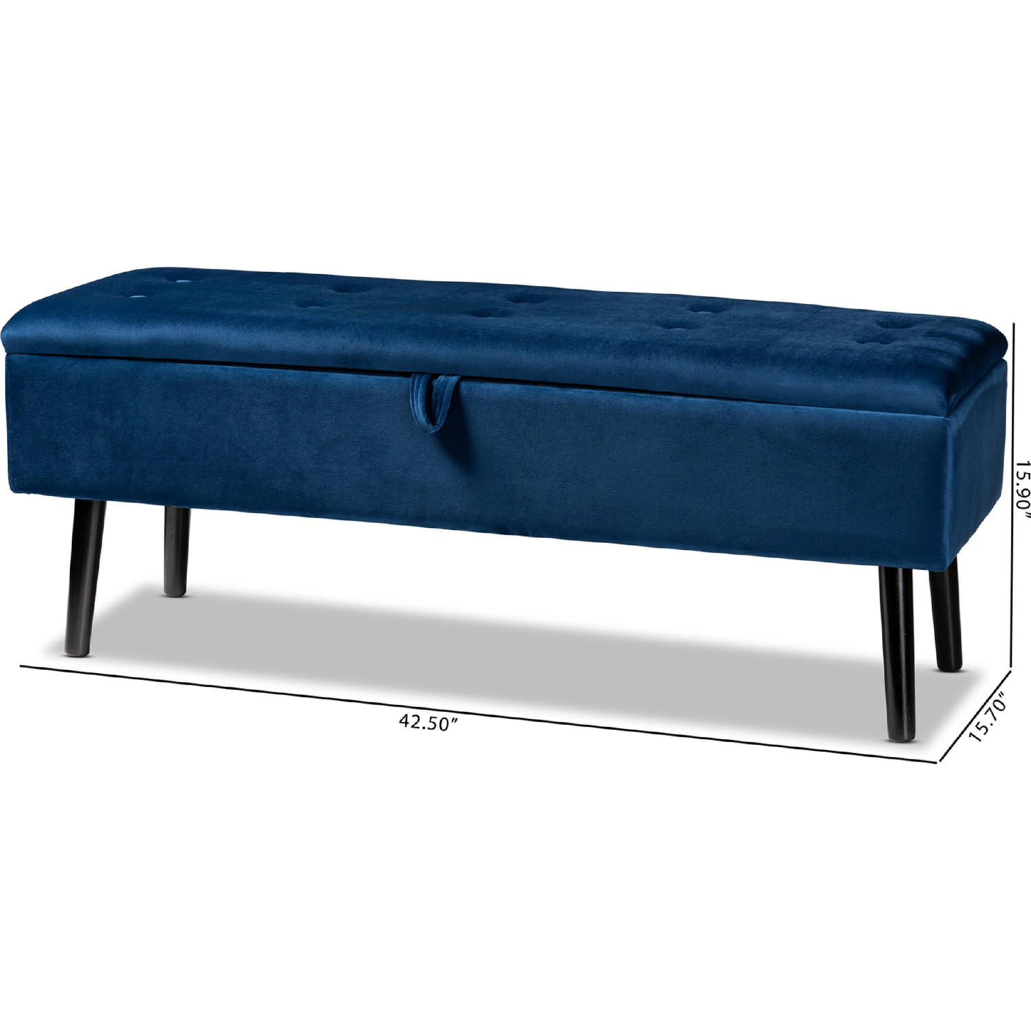 Baxton Studio FZD020108-Navy Blue Velvet-Bench Caine Storage Bench Tufted Navy Blue Velvet Dark Brown Wood