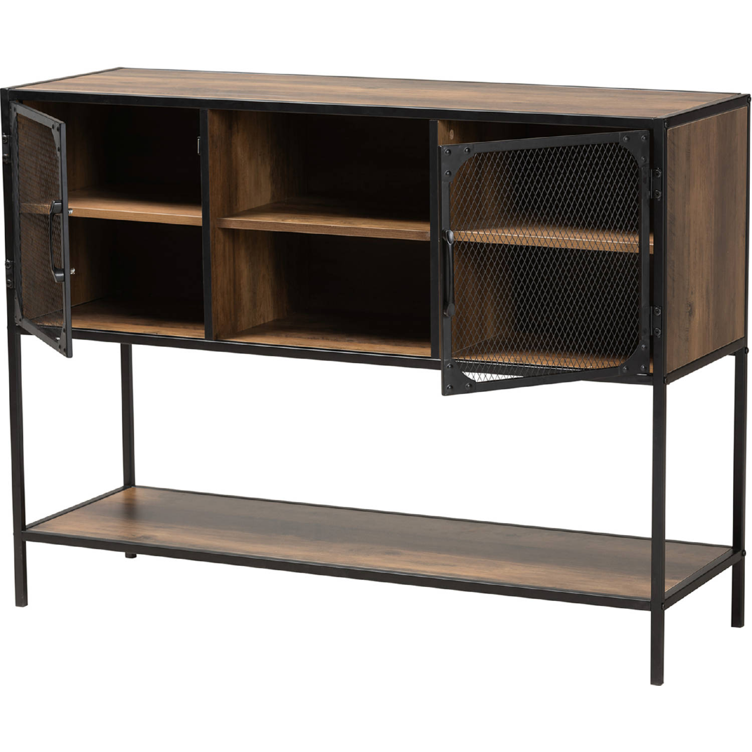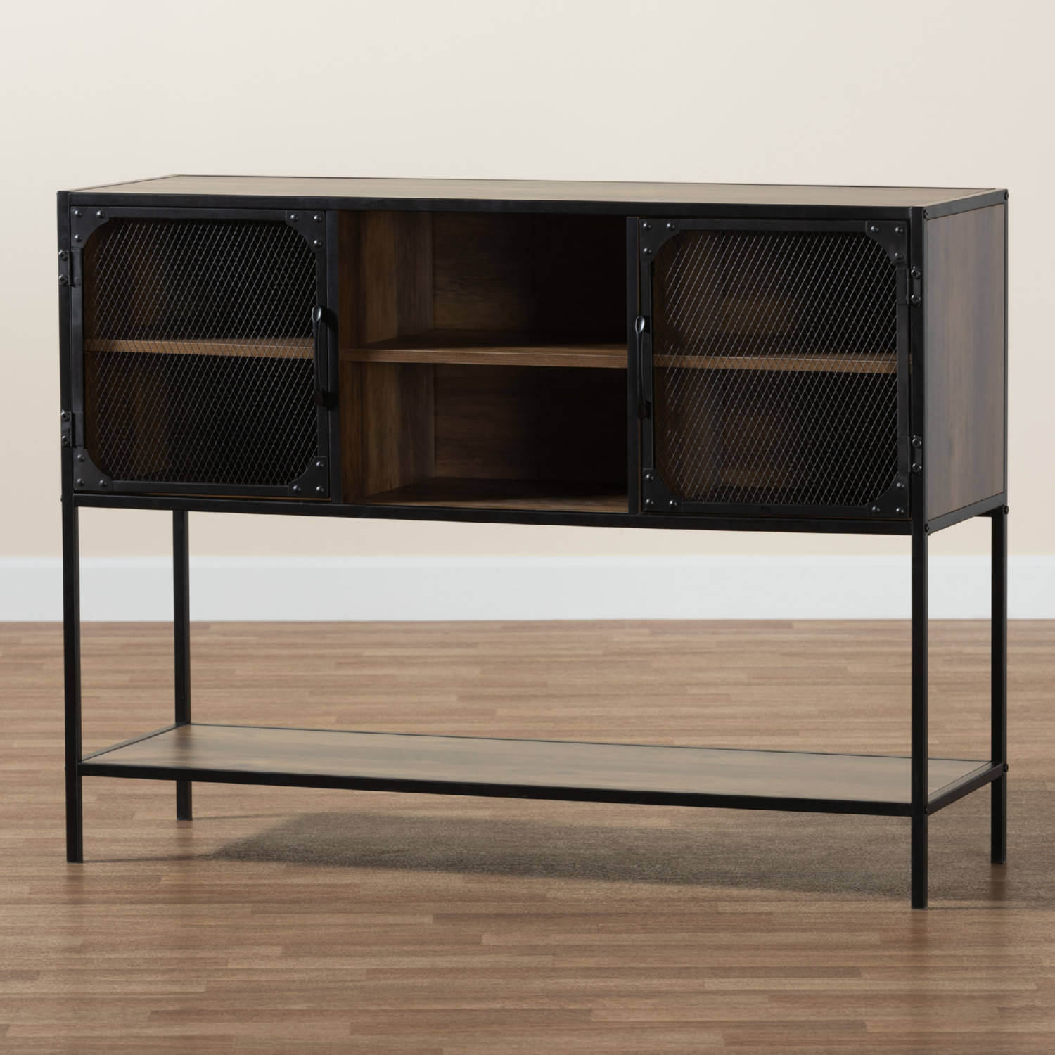 Baxton Studio Cardea 2 Door Sideboard in Walnut Brown Finish Wood & Black Metal