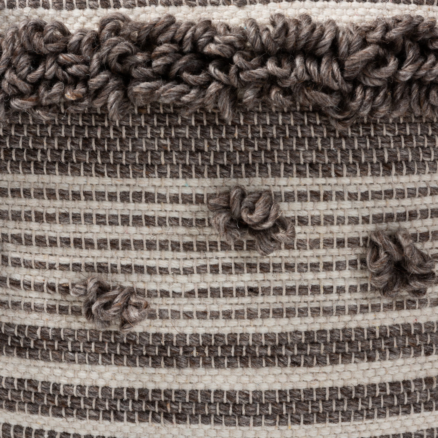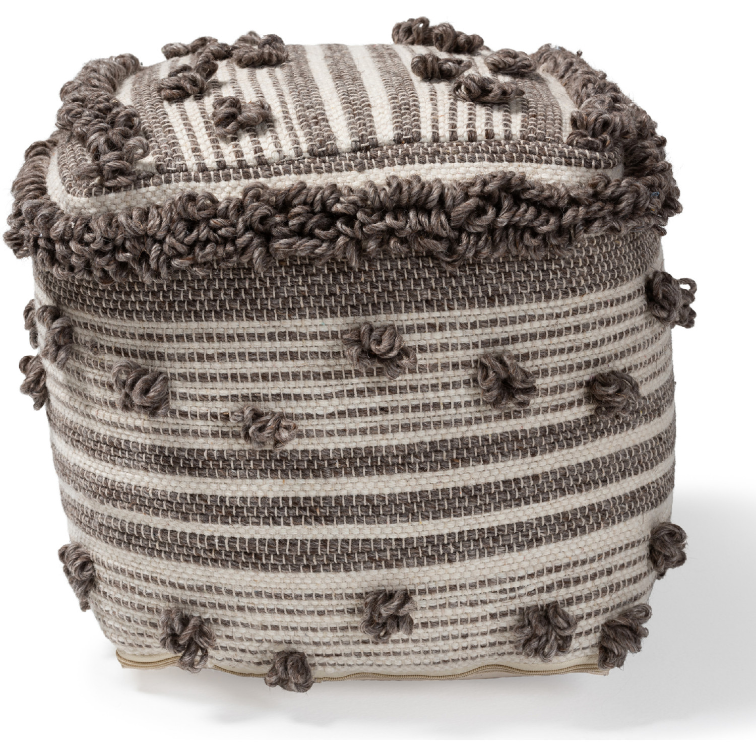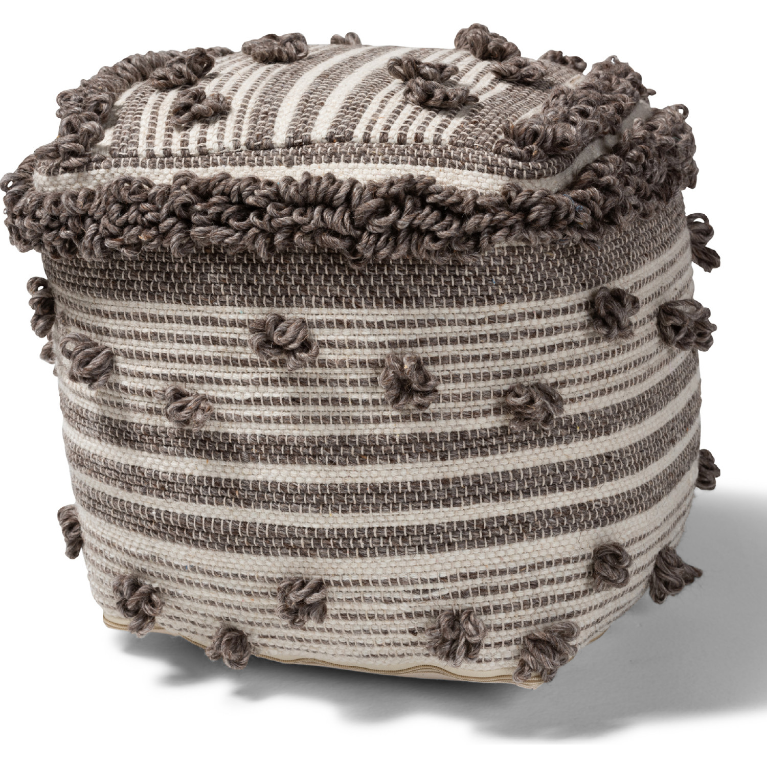 Baxton Studio Eligah Pouf Ottoman in Handwoven Ivory & Brown Wool