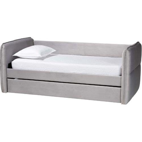 Baxton Studio CF9382-A-Light Grey-Daybed-F/T Finch Full Daybed Twin Trundle in Light Grey Velvet Fabric