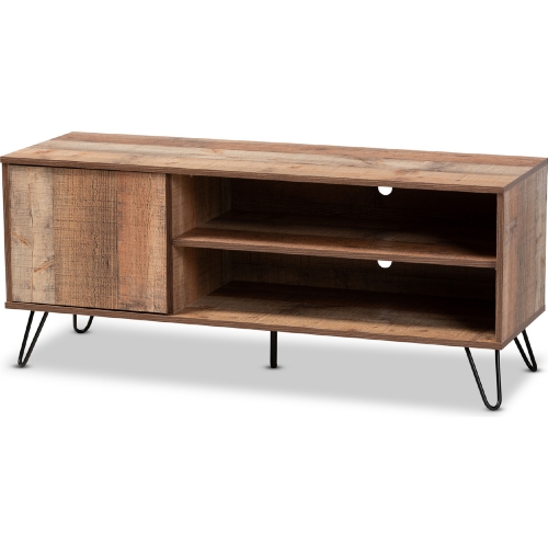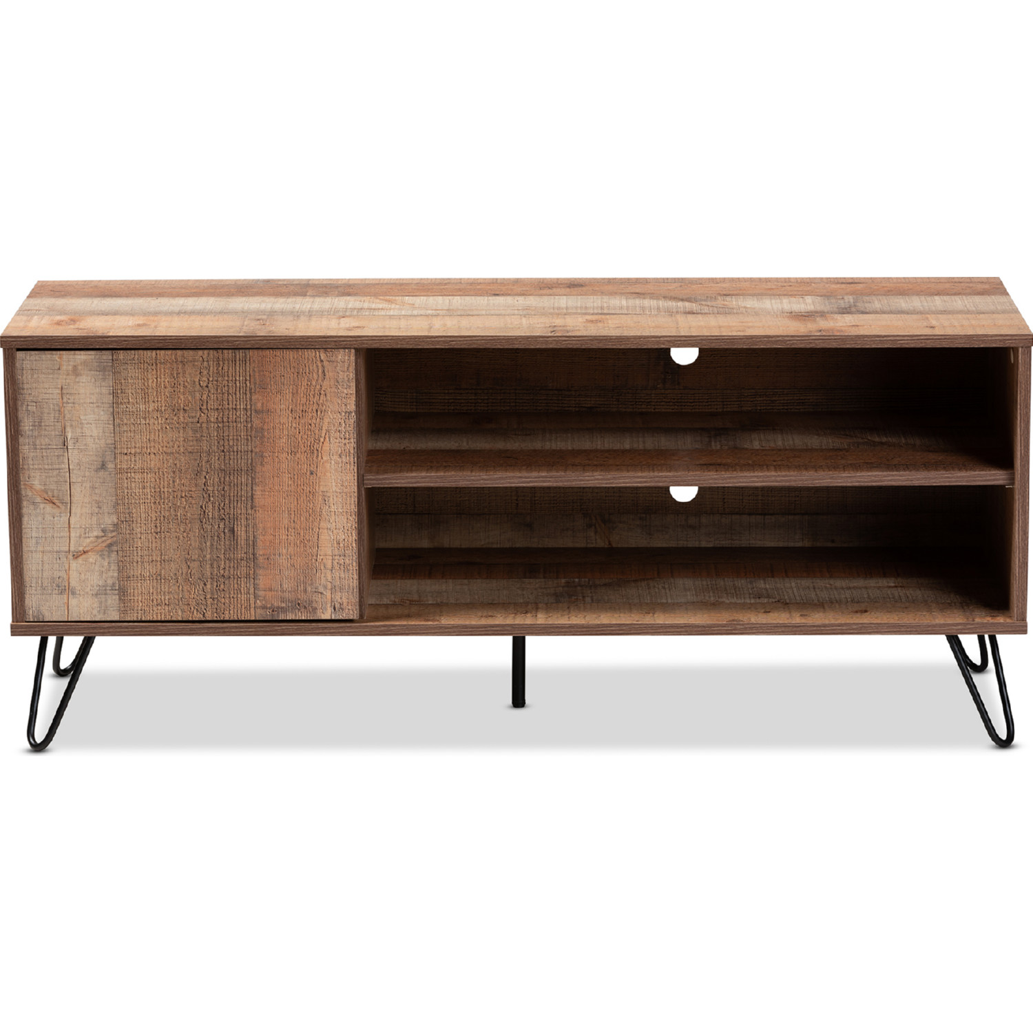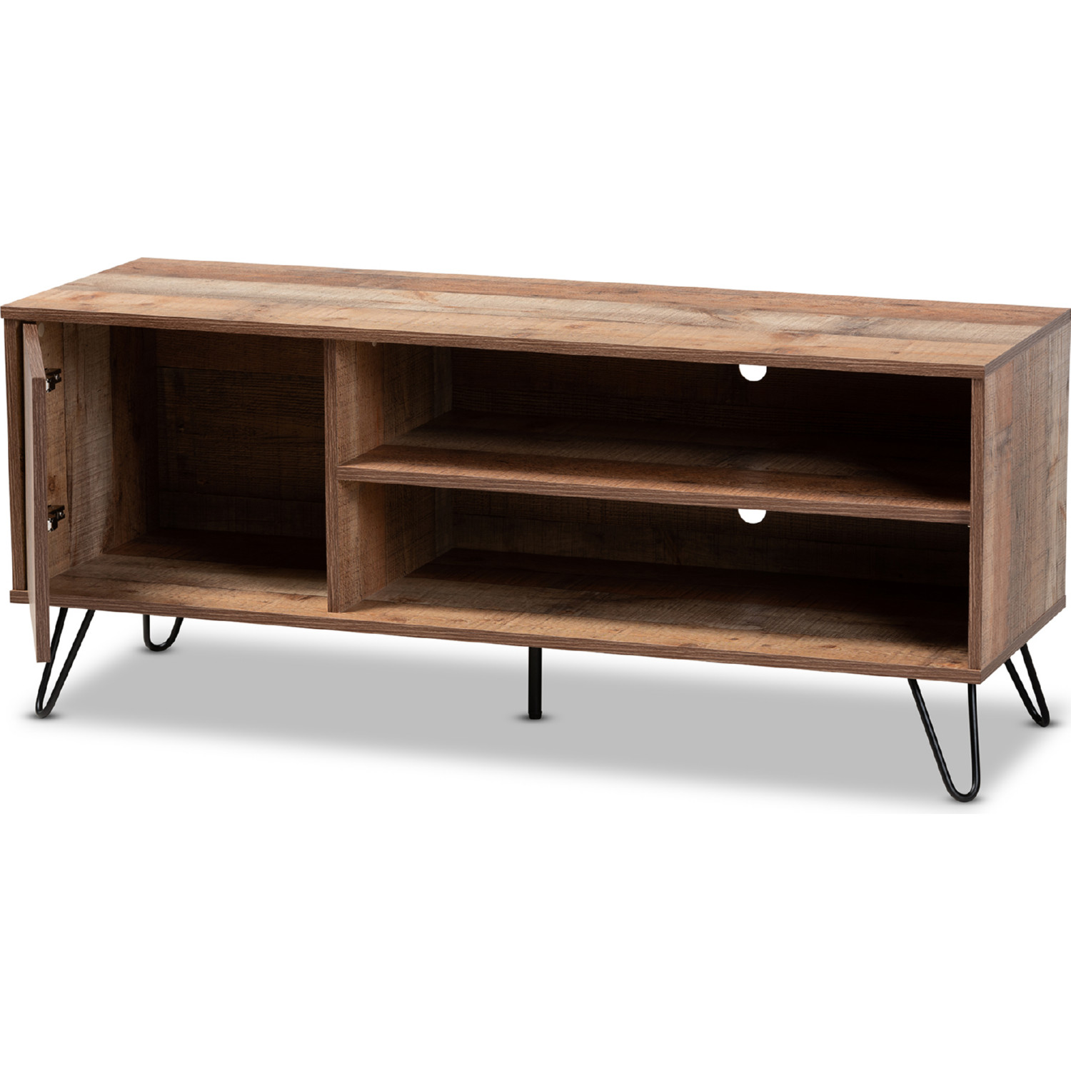 Baxton Studio TV8005-Vintage Oak-TV Iver 47" TV Stand Oak Finish Wood & Black Hairpin Legs