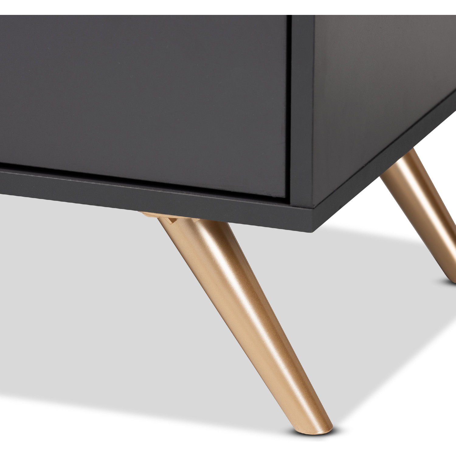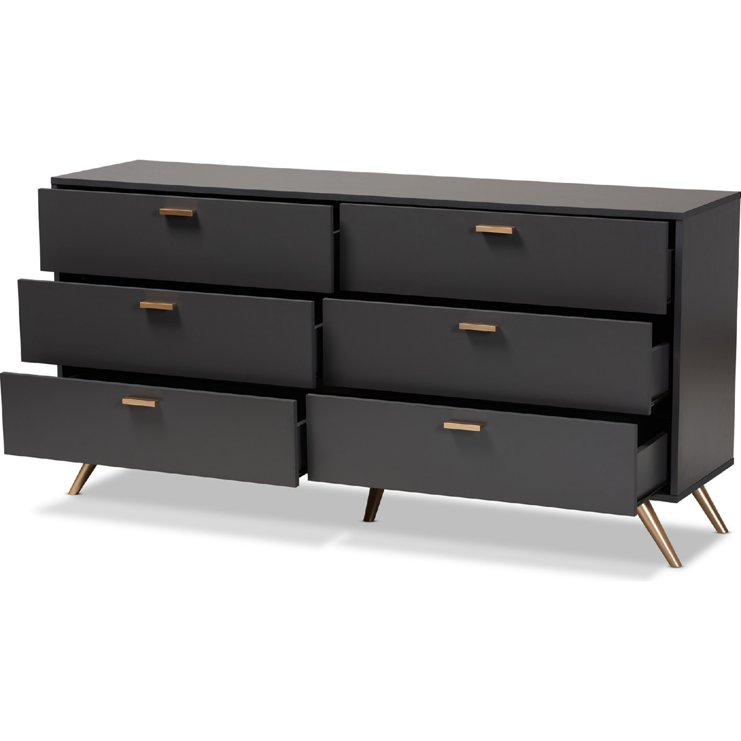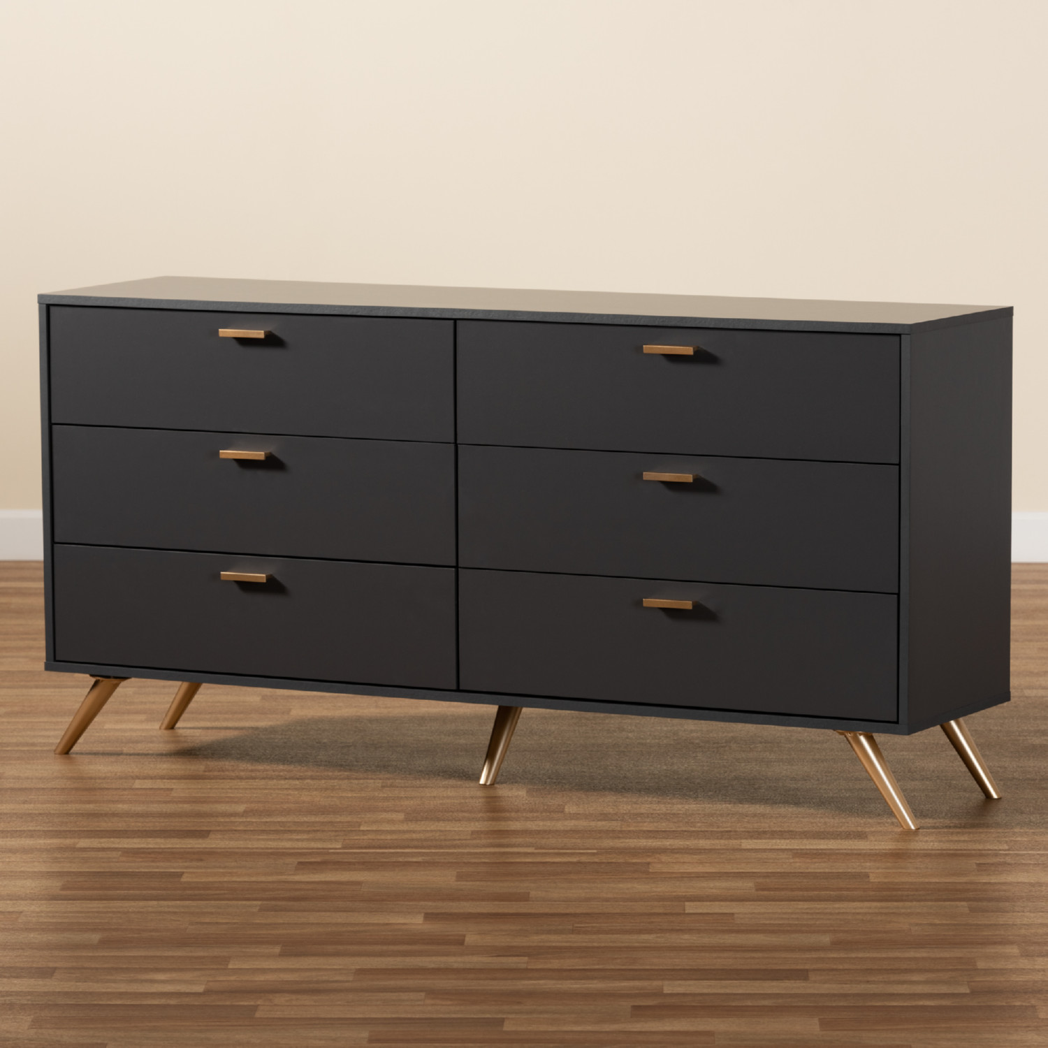 Baxton Studio Kelson 6 Drawer Dresser in Dark Gray Wood & Gold