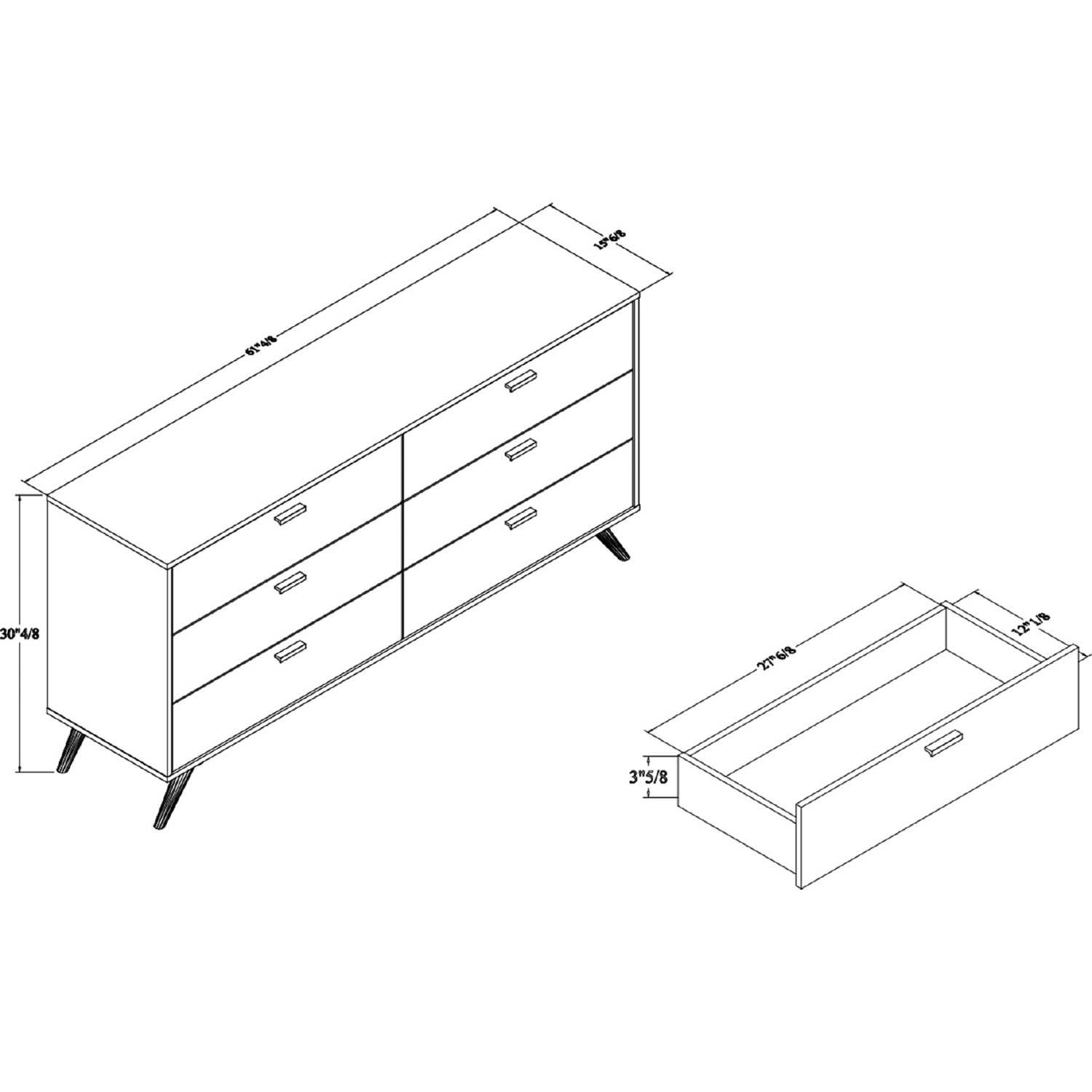 Dimensions: 61.5"W x 15.75"D x 30.5"H, Drawer: 3.6"H x 27.75"W x 12.1"D, Legs: 5.9"H