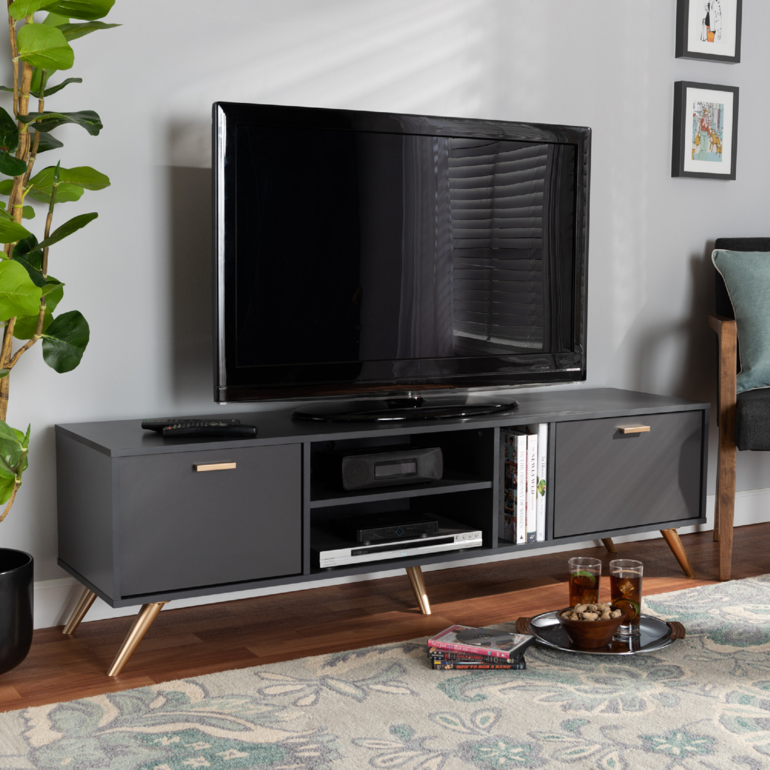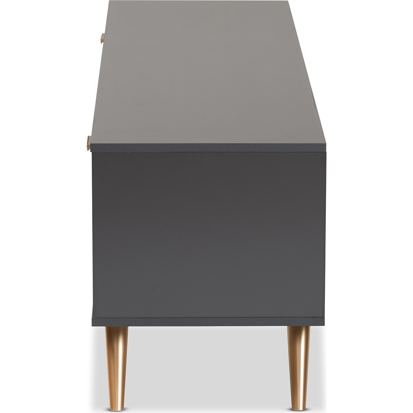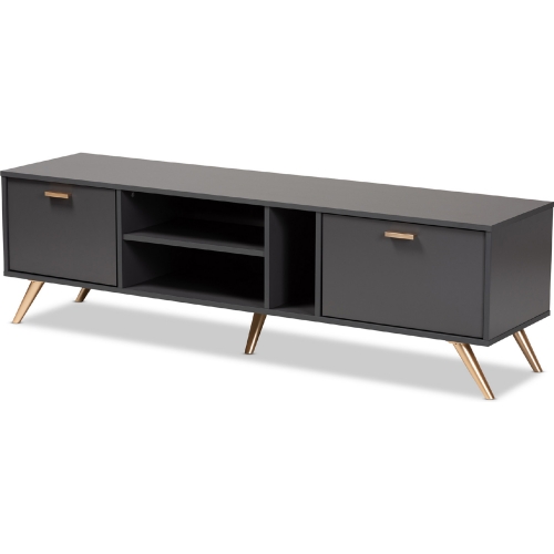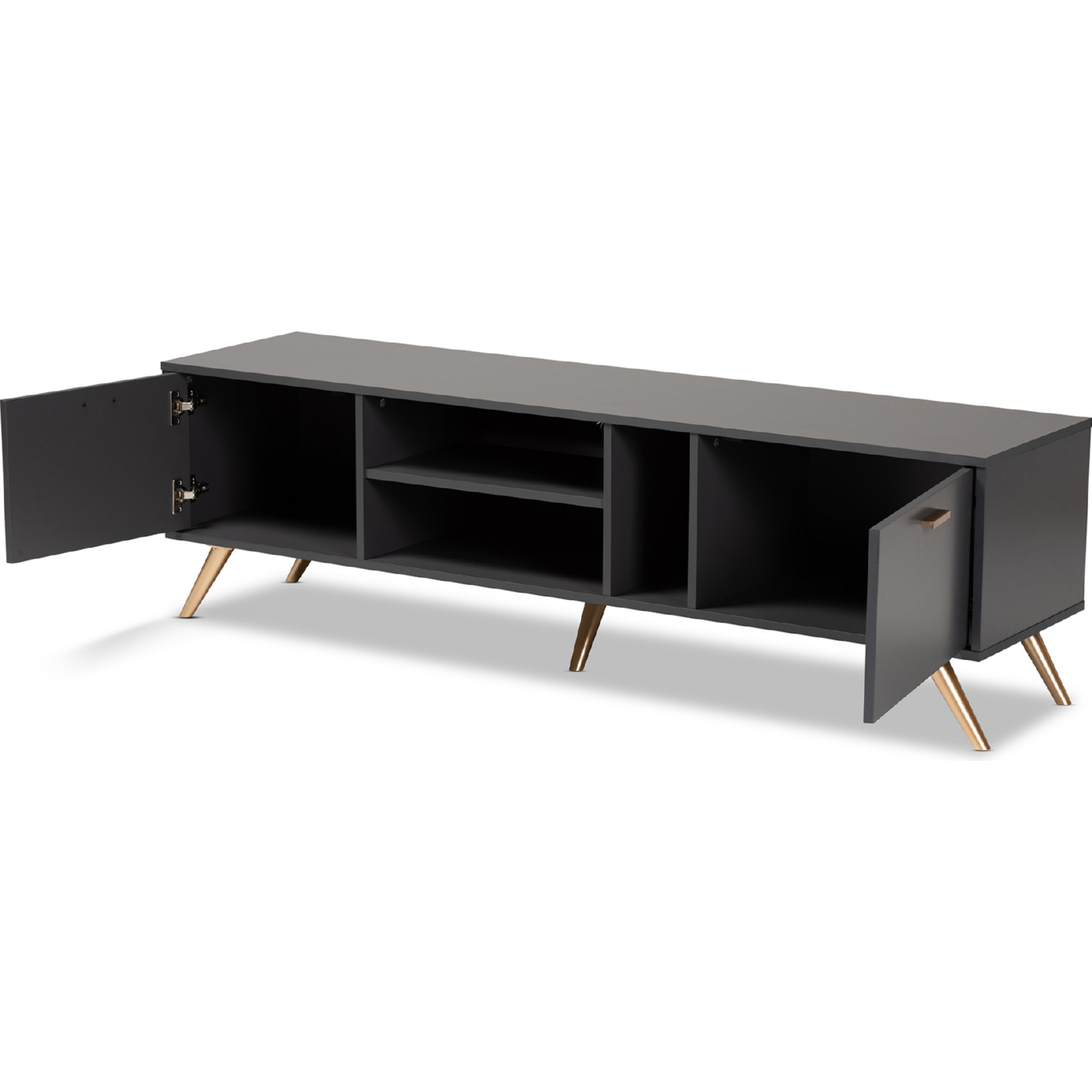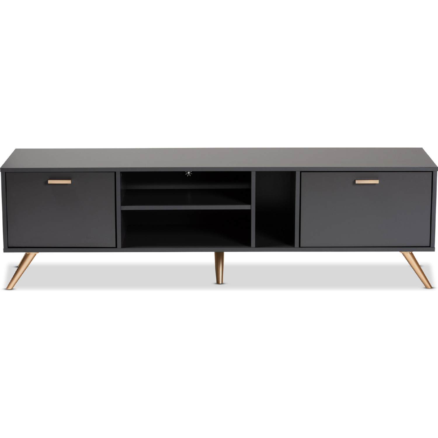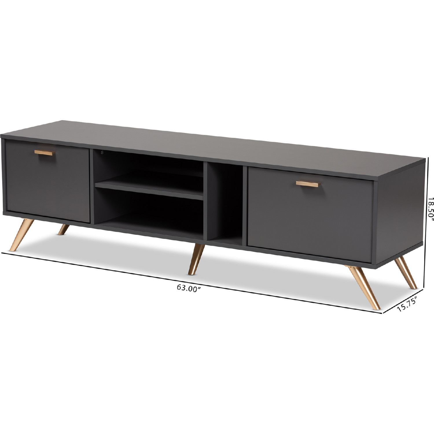 Baxton Studio LV19TV1912-Dark Grey-TV Kelson 63" TV Stand Dark Gray Wood & Gold