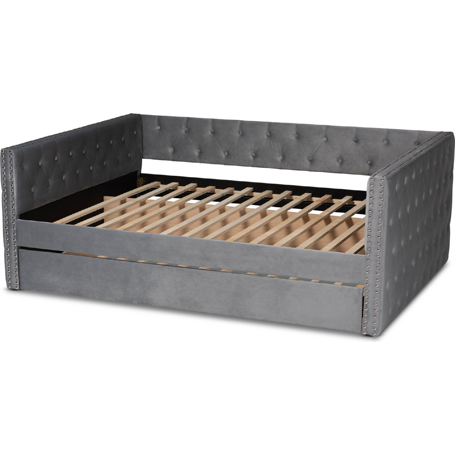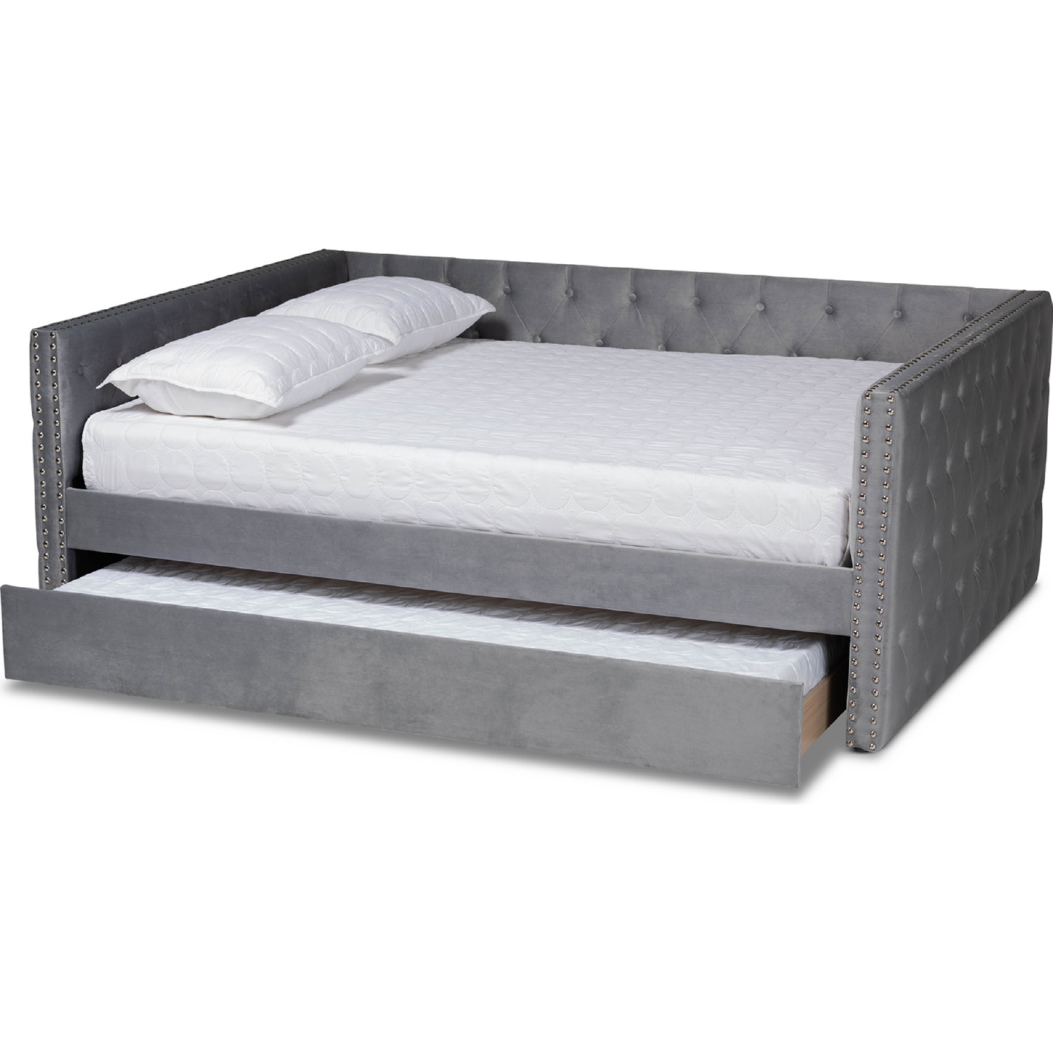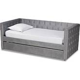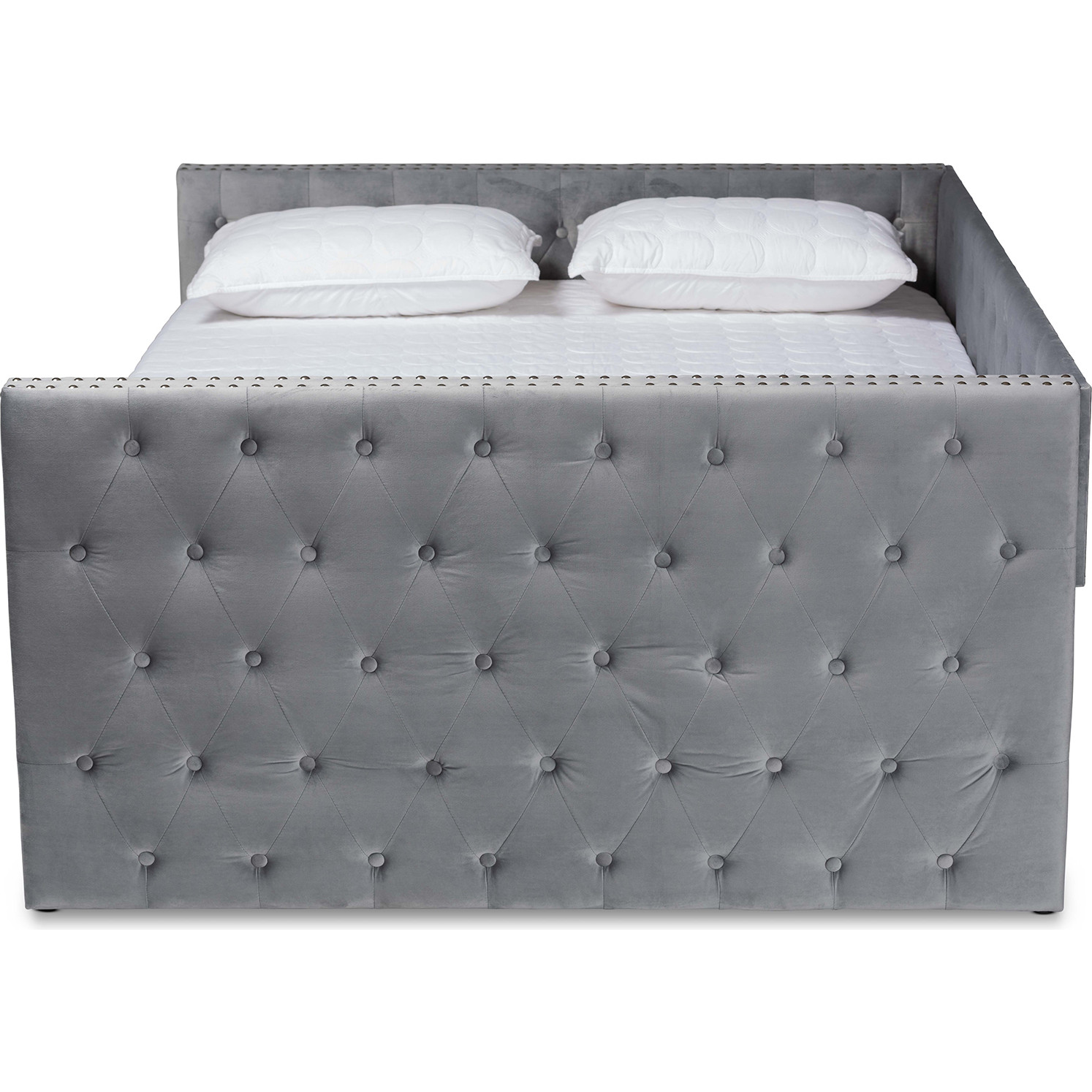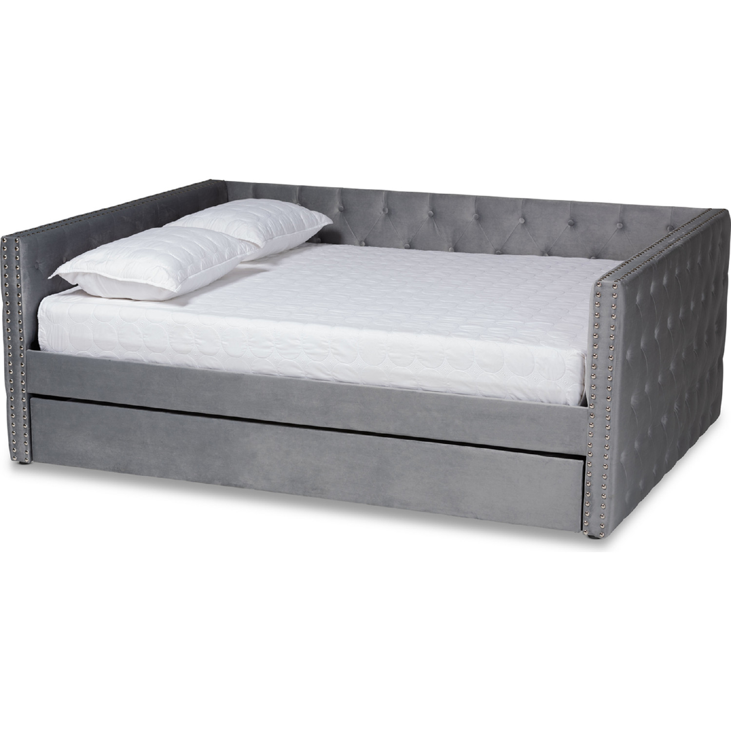 Baxton Studio Larkin Queen Daybed with Trundle in Tufted Gray Velvet
