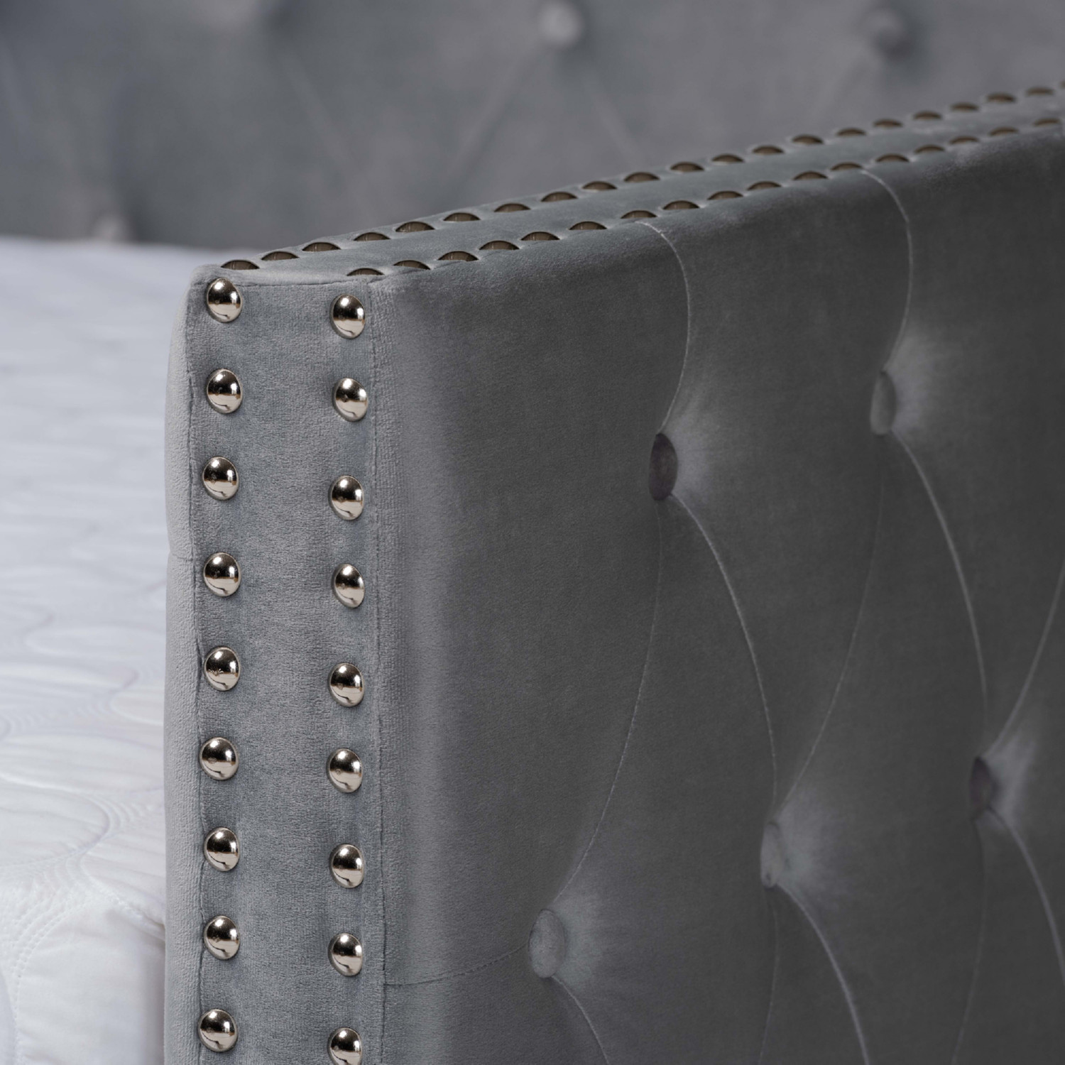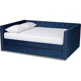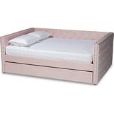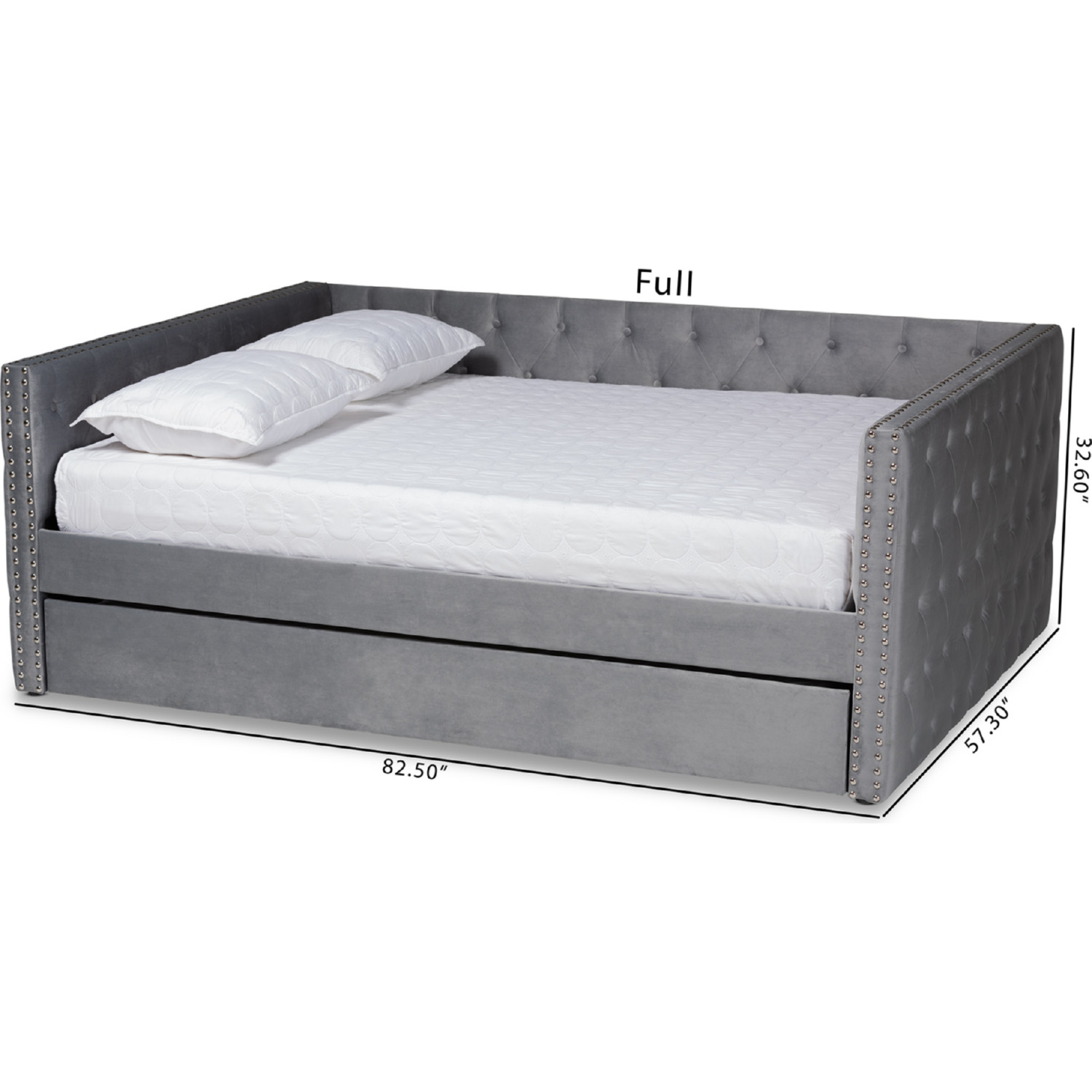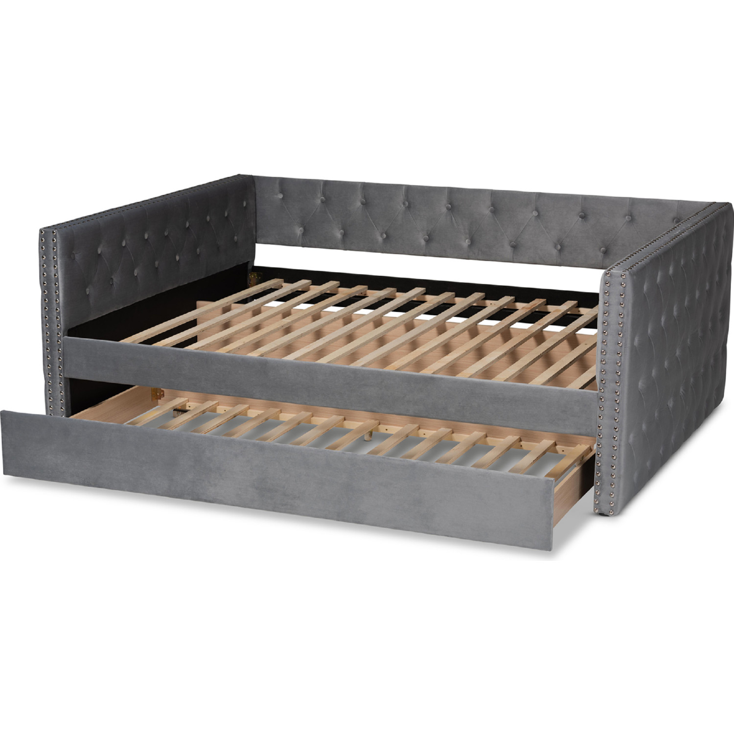 Baxton Studio Larkin Queen Daybed with Trundle in Tufted Gray Velvet