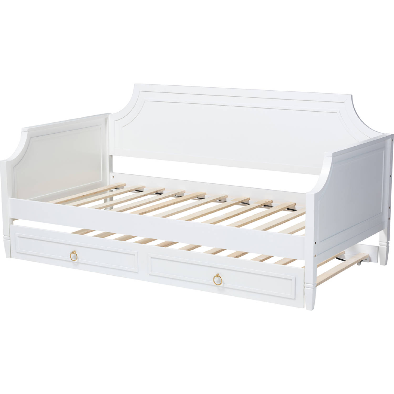 Baxton Studio Mariana-White-Daybed-F/T Mariana Full Daybed Twin Trundle White Wood