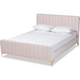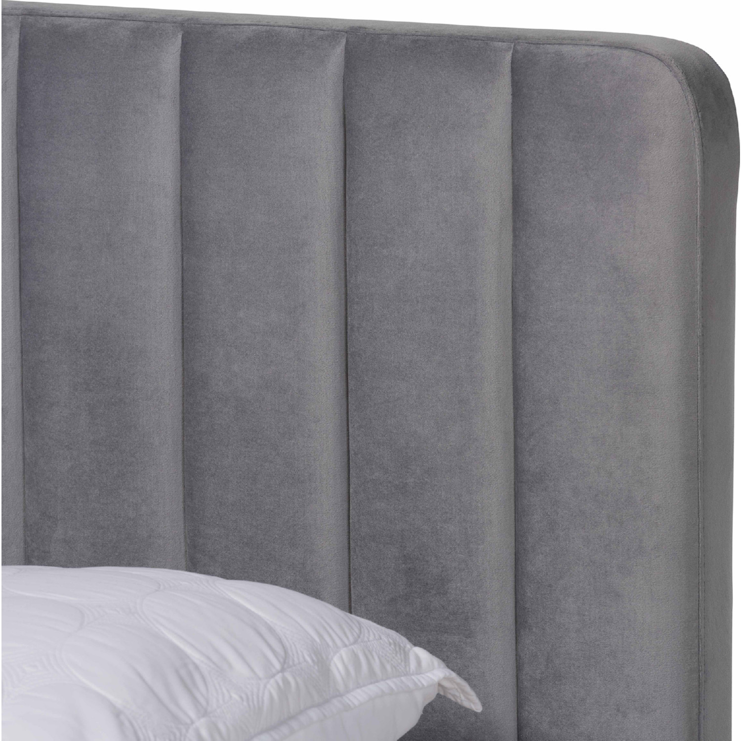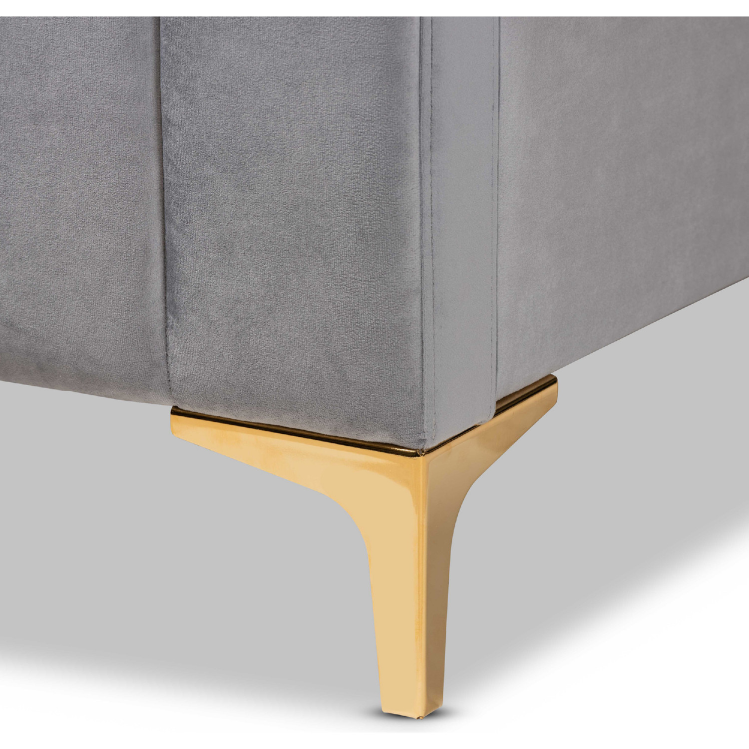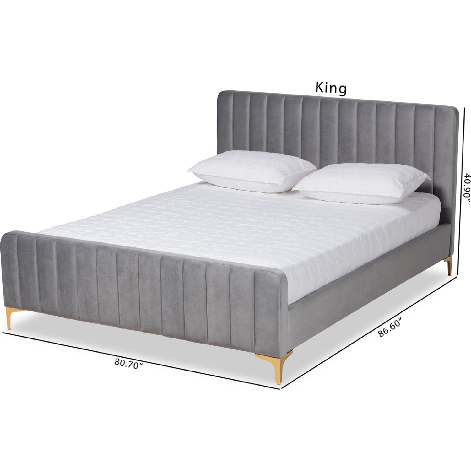 Baxton Studio Nami Queen Platform Bed in Tufted Light Gray Velvet & Gold