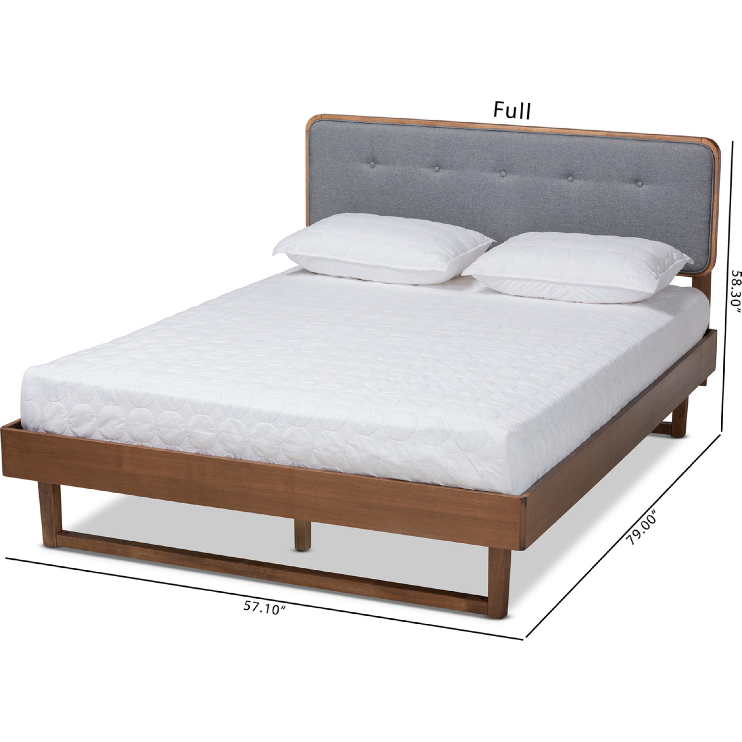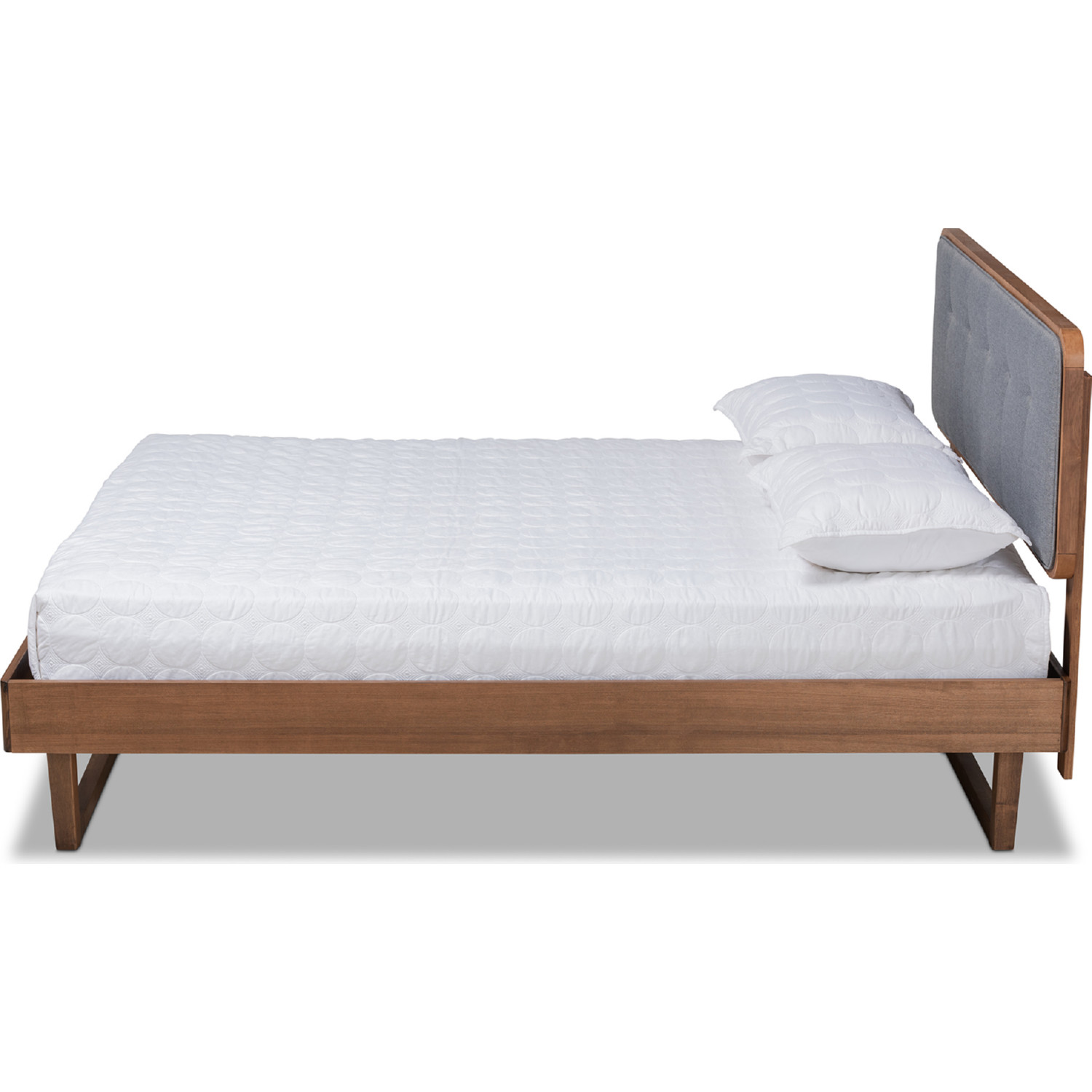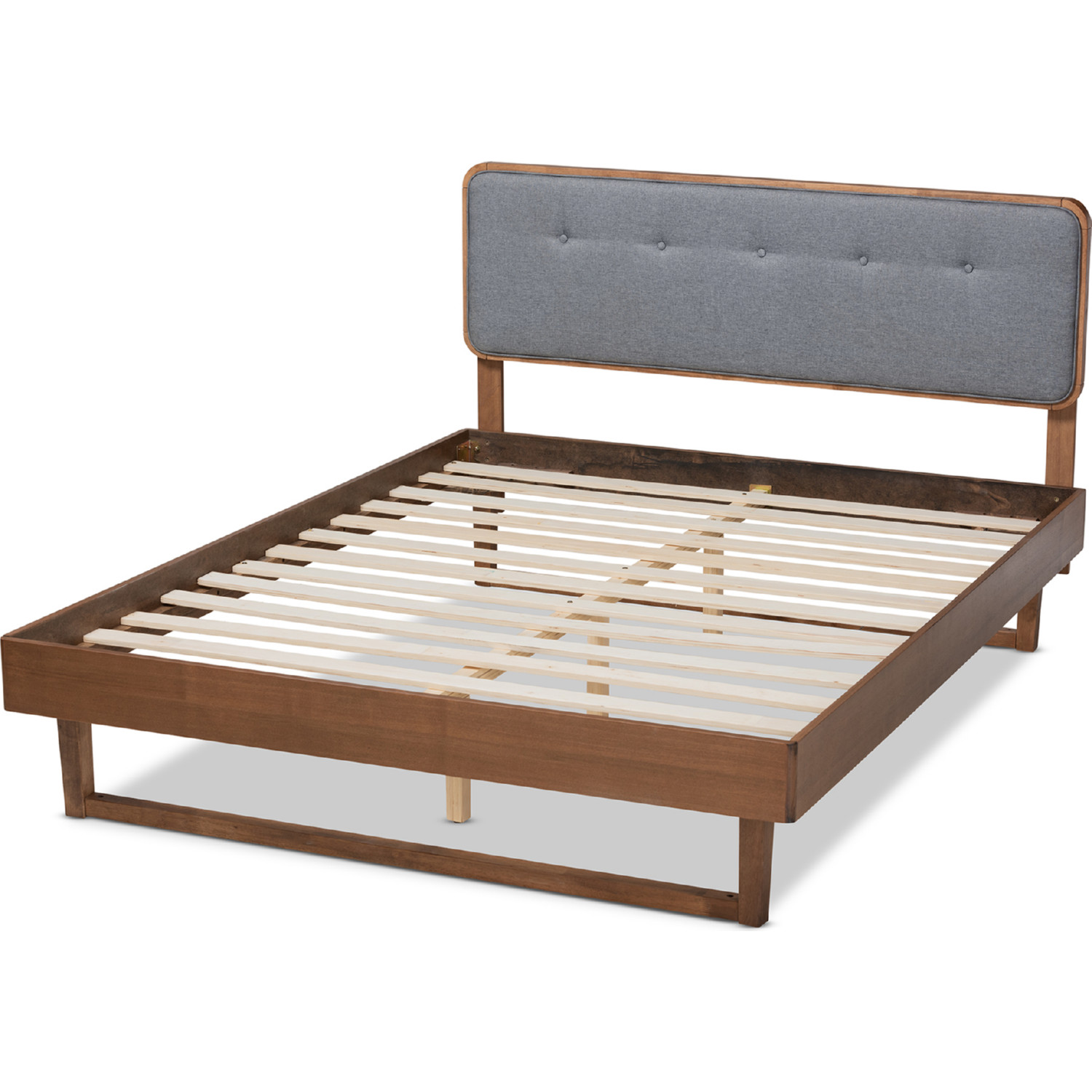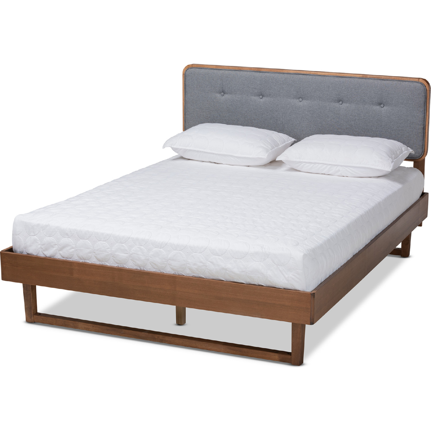 Baxton Studio Natalia-Dark Grey/Ash Walnut-Queen Natalia Queen Platform Bed Dark Gray Fabric & Ash Walnut Finish