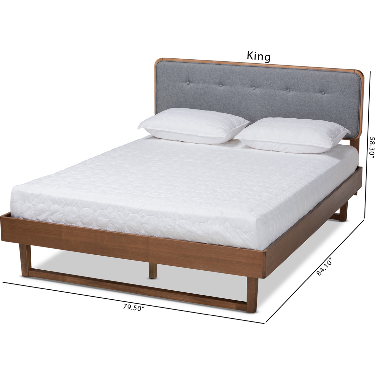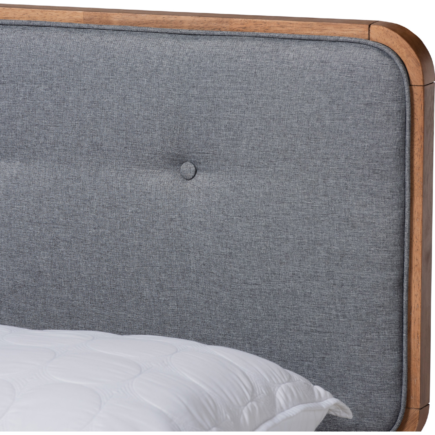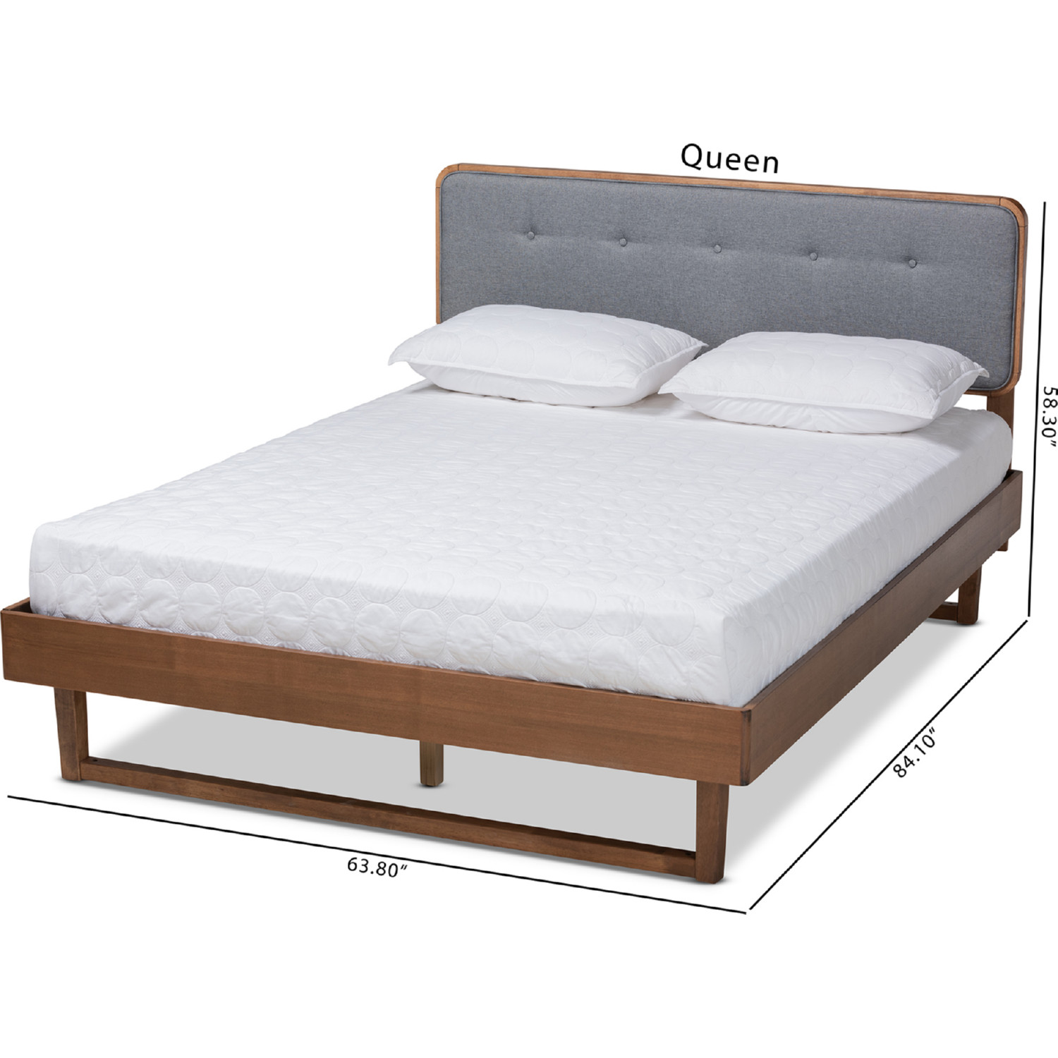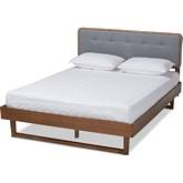 Baxton Studio Natalia Queen Platform Bed in Dark Gray Fabric & Ash Walnut Finish