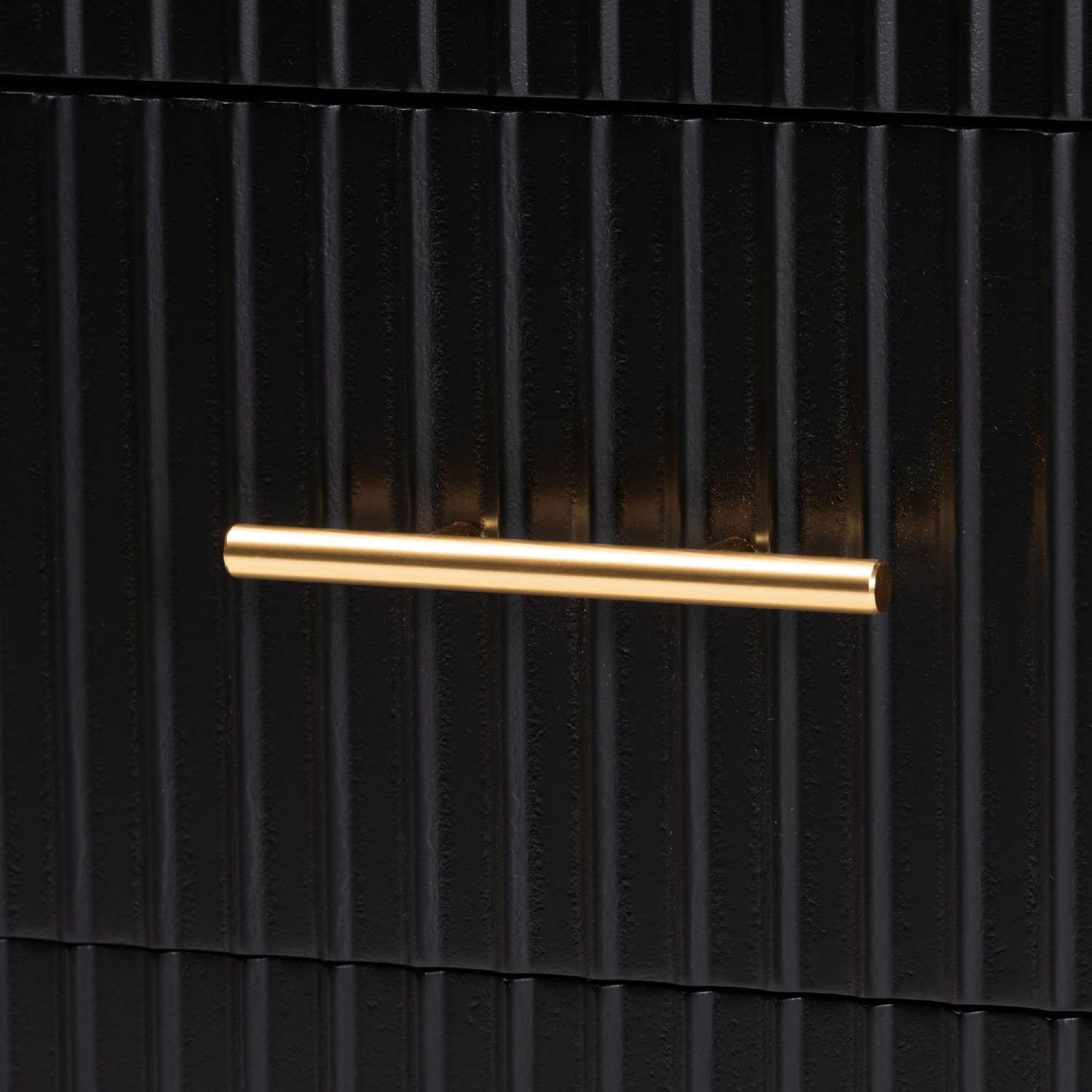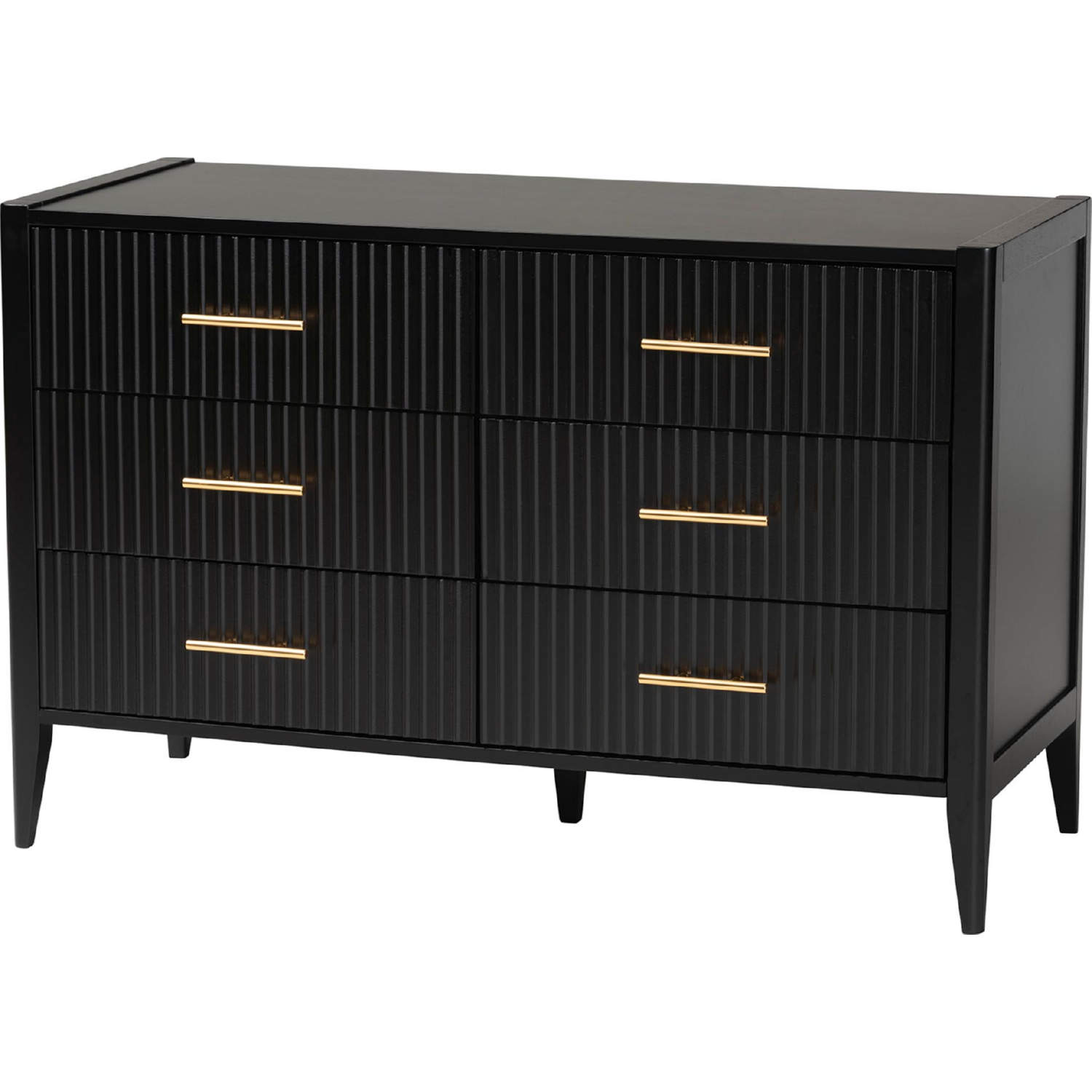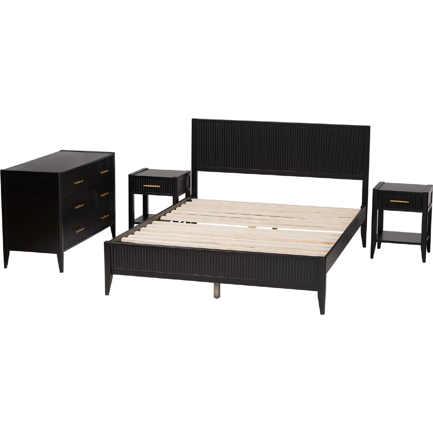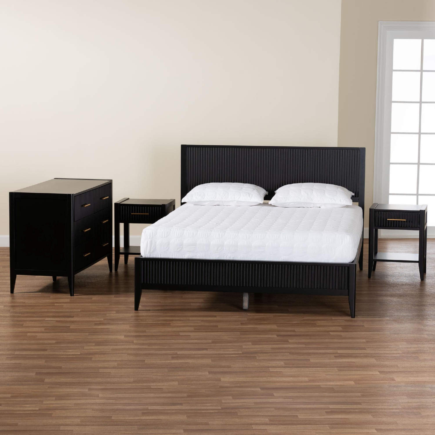 Baxton Studio SW8596-Black-4PC King Bedroom Set Primrose King 4 Piece Bedroom Set Black Fluted Wood