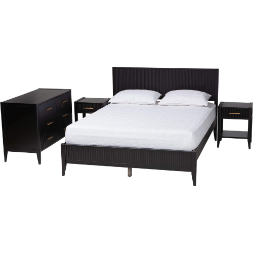 Baxton Studio Primrose King 4 Piece Bedroom Set in Black Fluted Wood