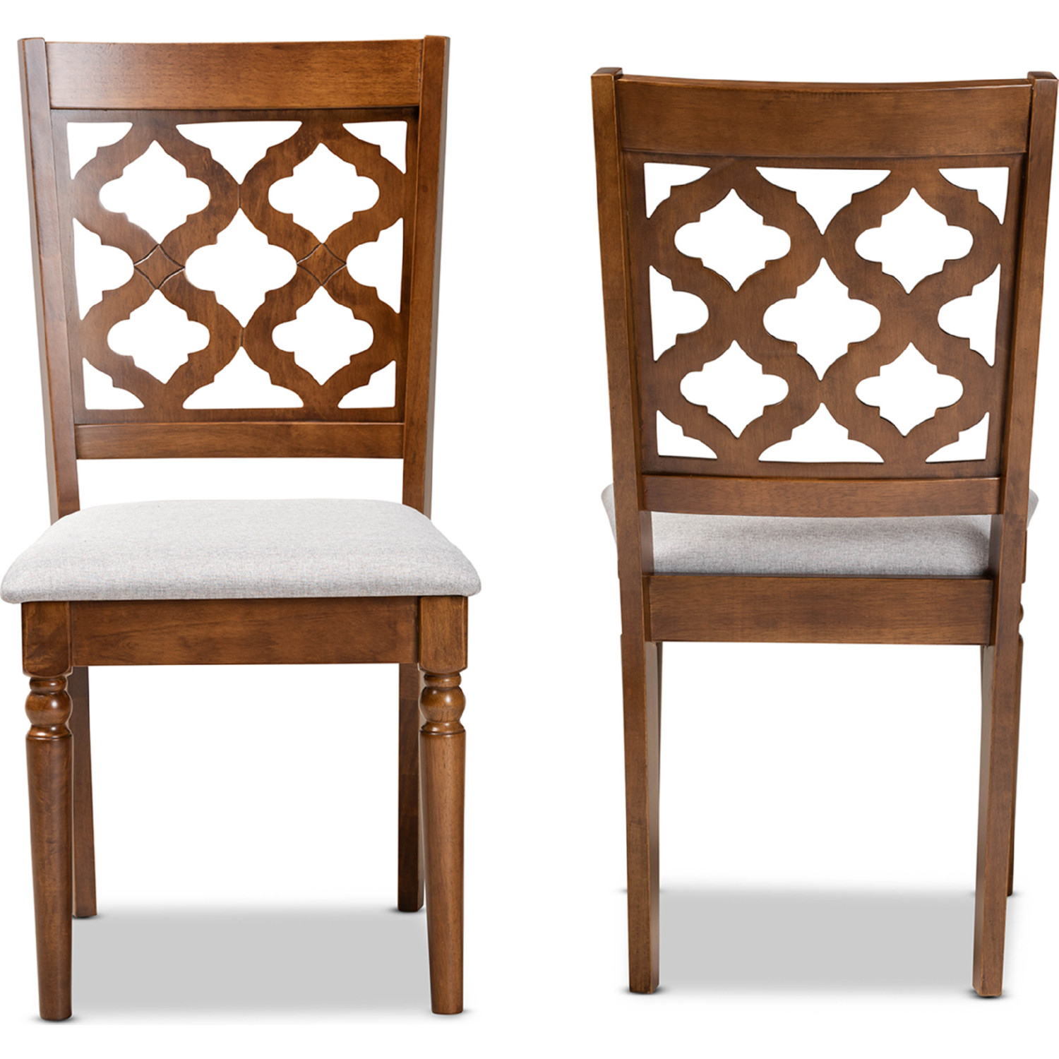 Baxton Studio Ramiro Dining Chair in Gray Fabric & Walnut Finish (Set of 2)