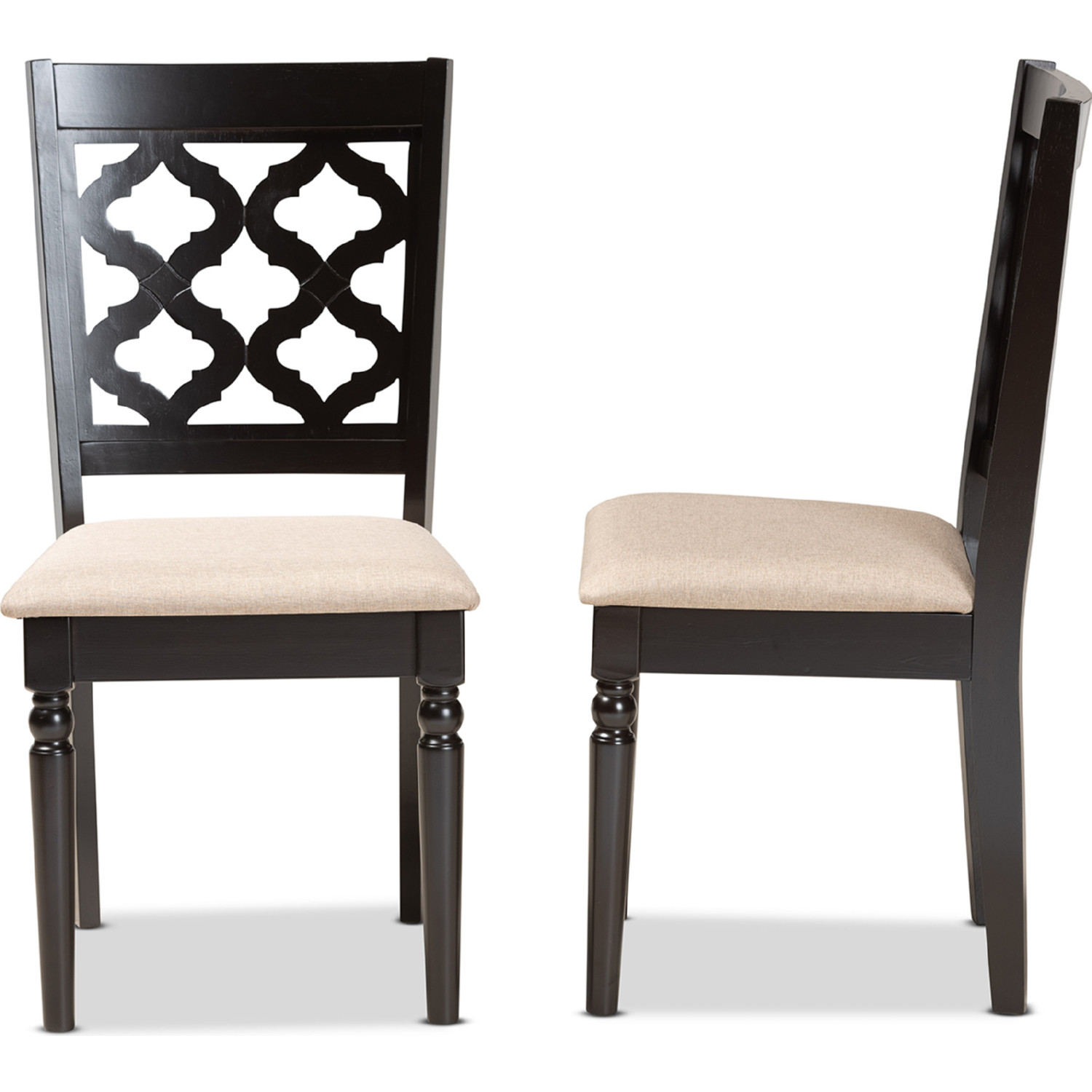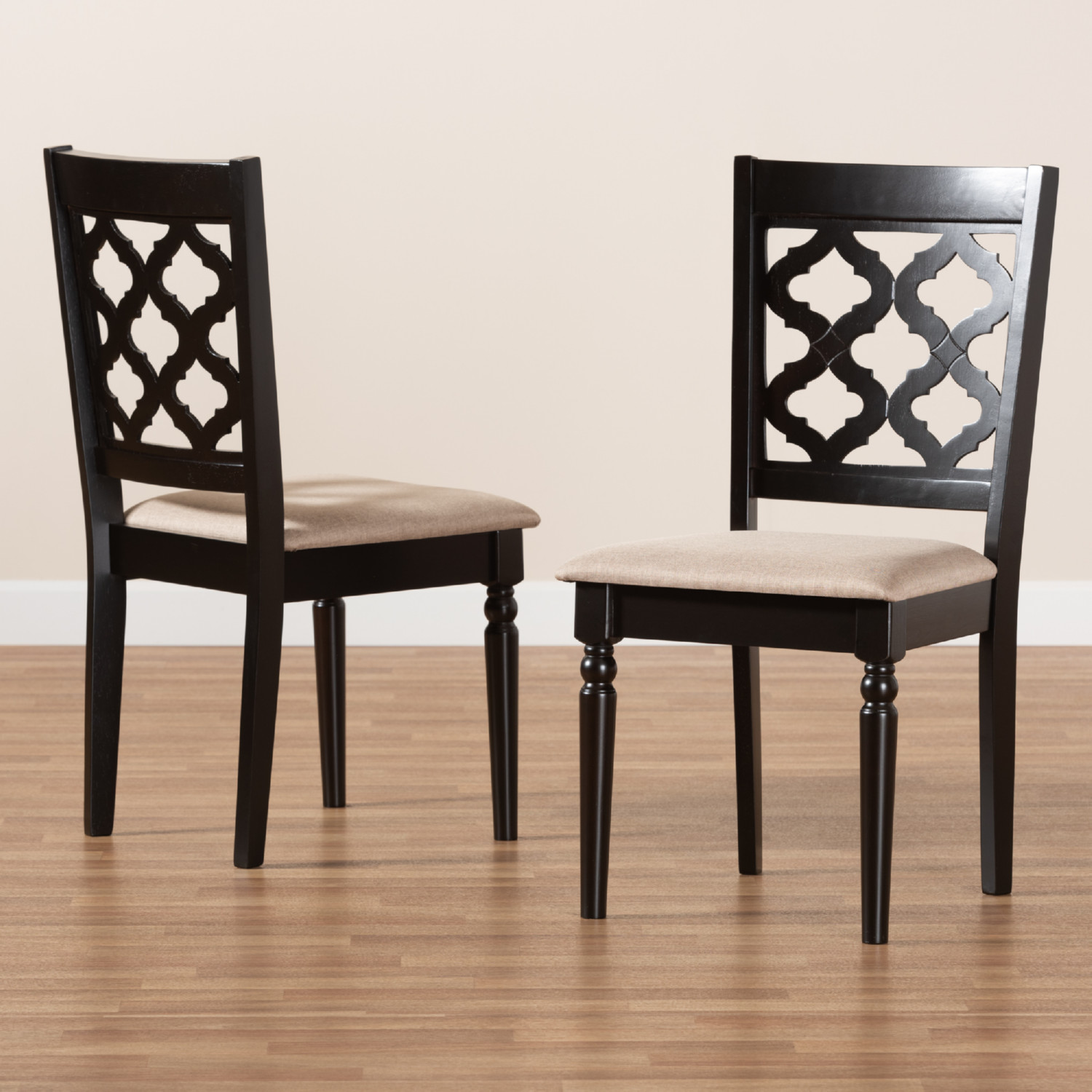 Baxton Studio Ramiro Dining Chair in Sand Fabric & Dark Wood (Set of 2)
