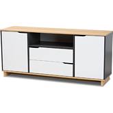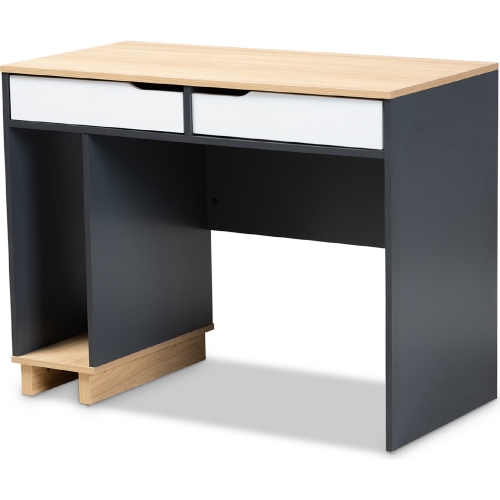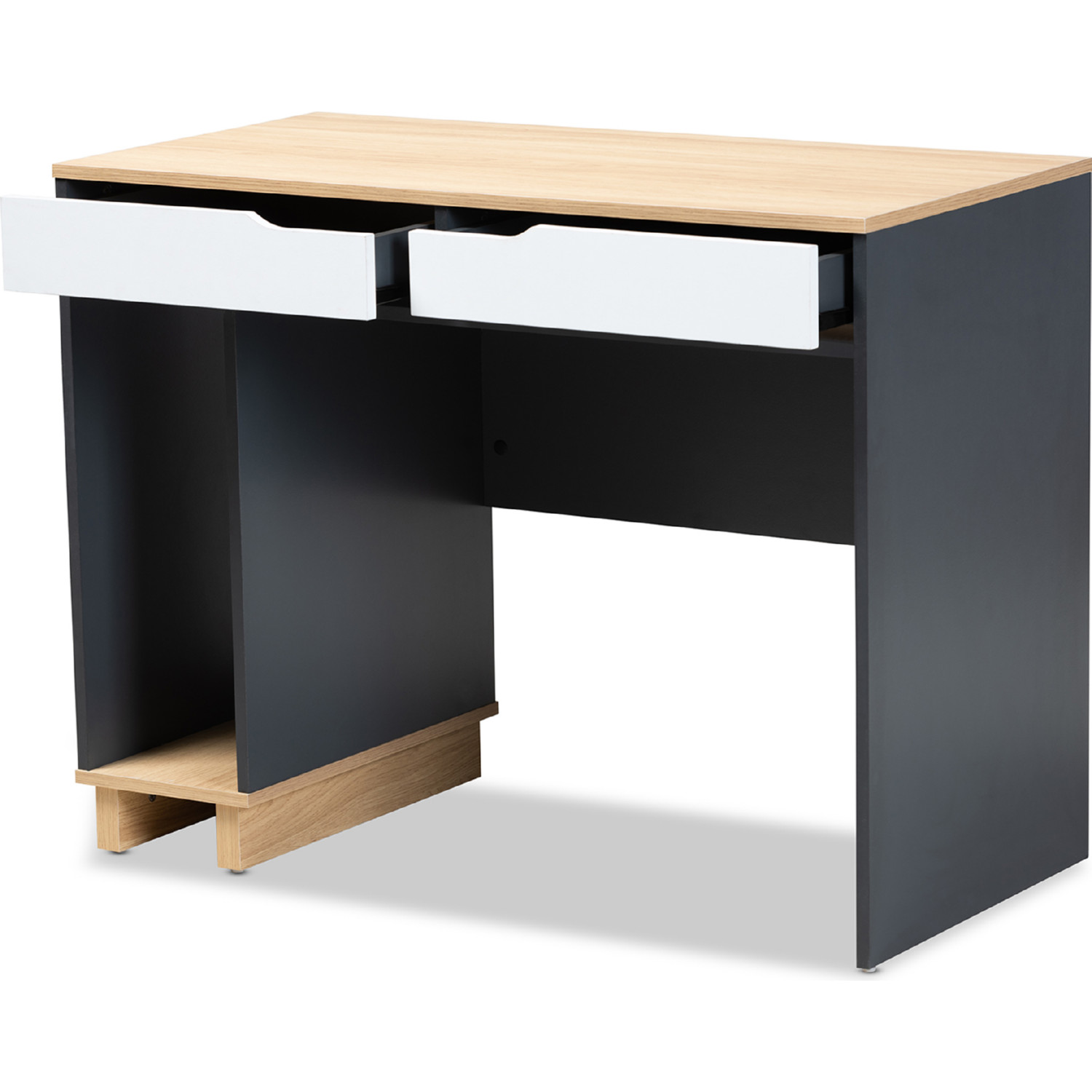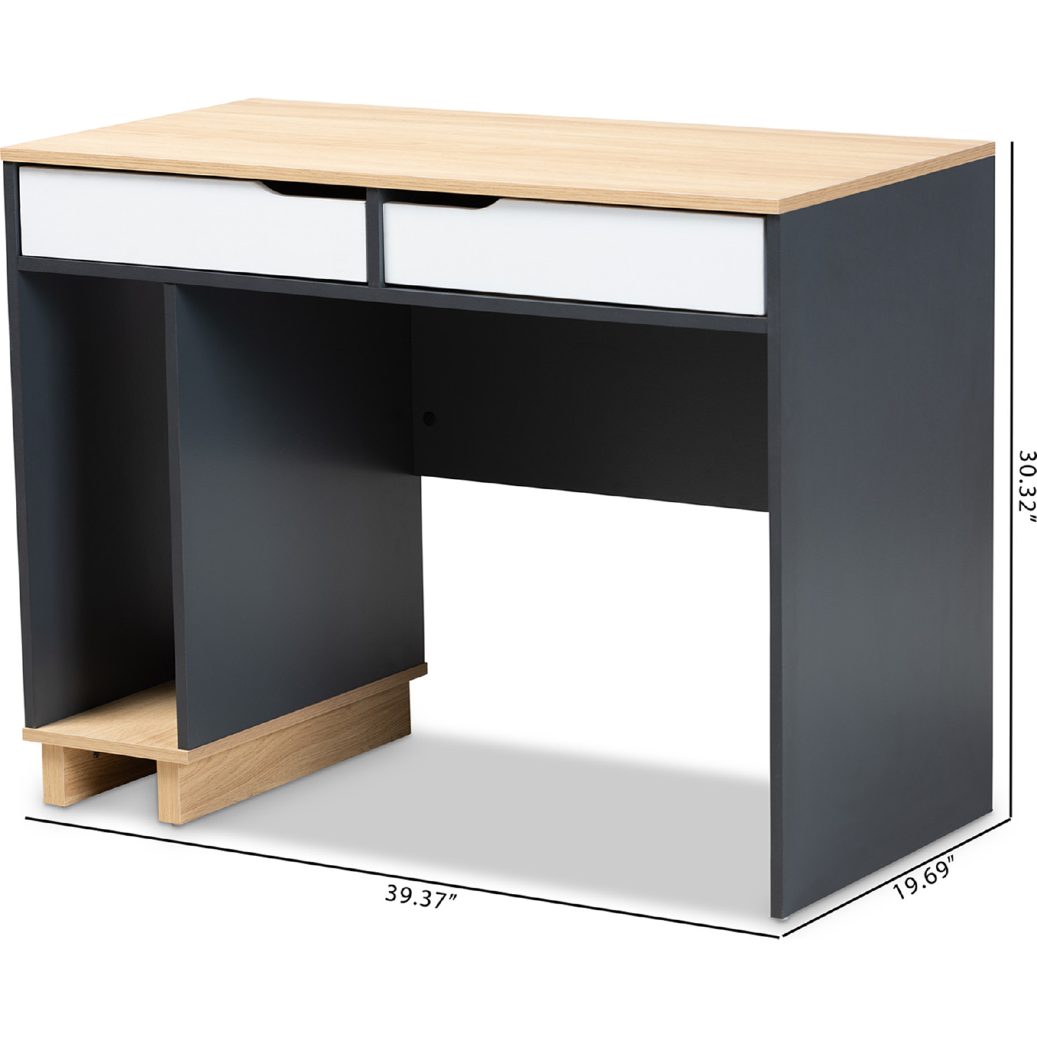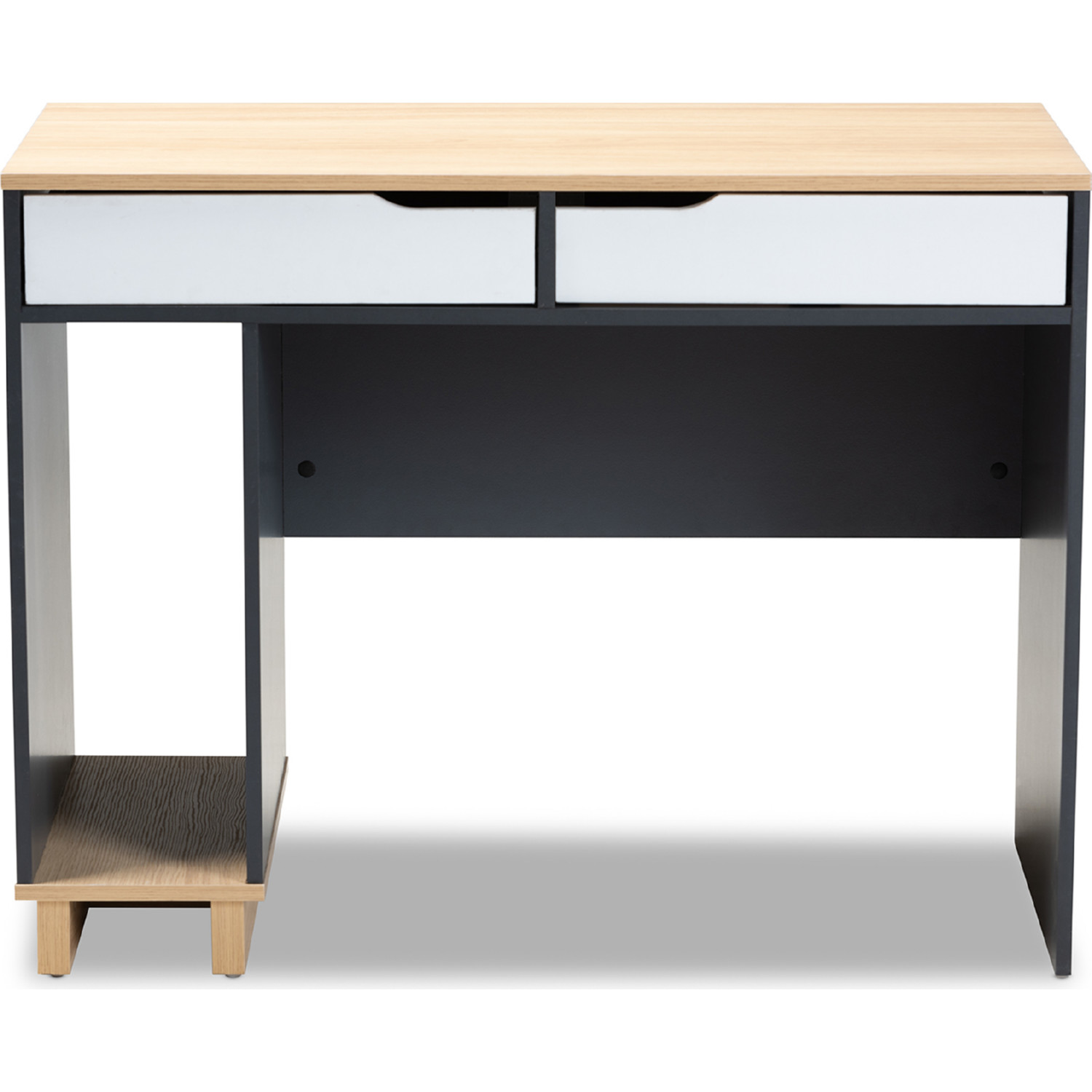 Baxton Studio ST8001-Oak/Grey/White-Desk Reed 2 Drawer Desk White, Oak & Gray Finish