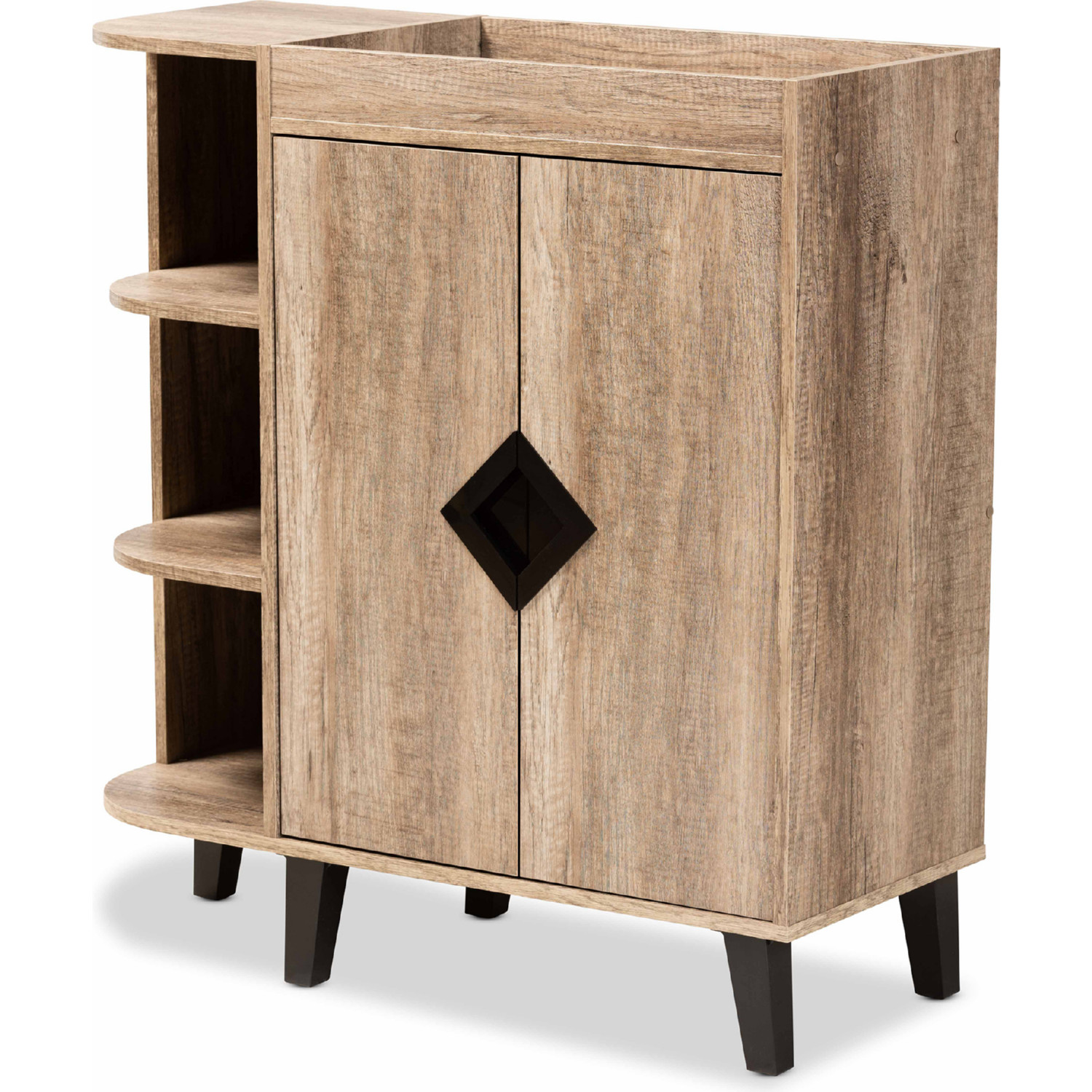 Baxton Studio Wales-Shoe Cabinet-Open Shelf Wales 2 Door Shoe Storage Cabinet Oak Finish Wood