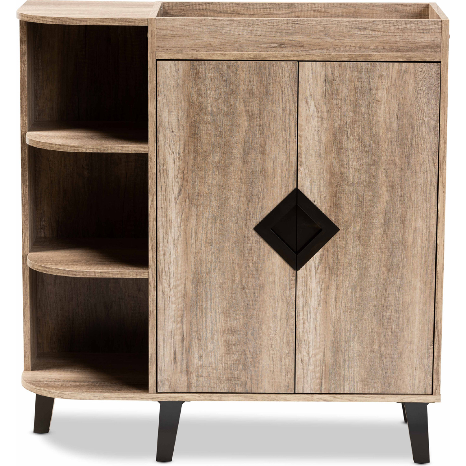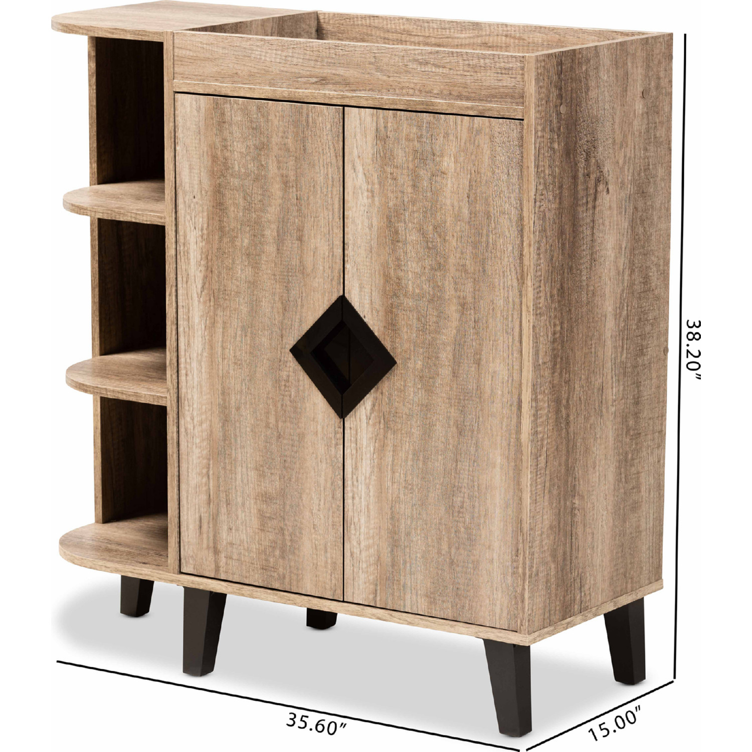 Baxton Studio Wales 2 Door Shoe Storage Cabinet in Oak Finish Wood