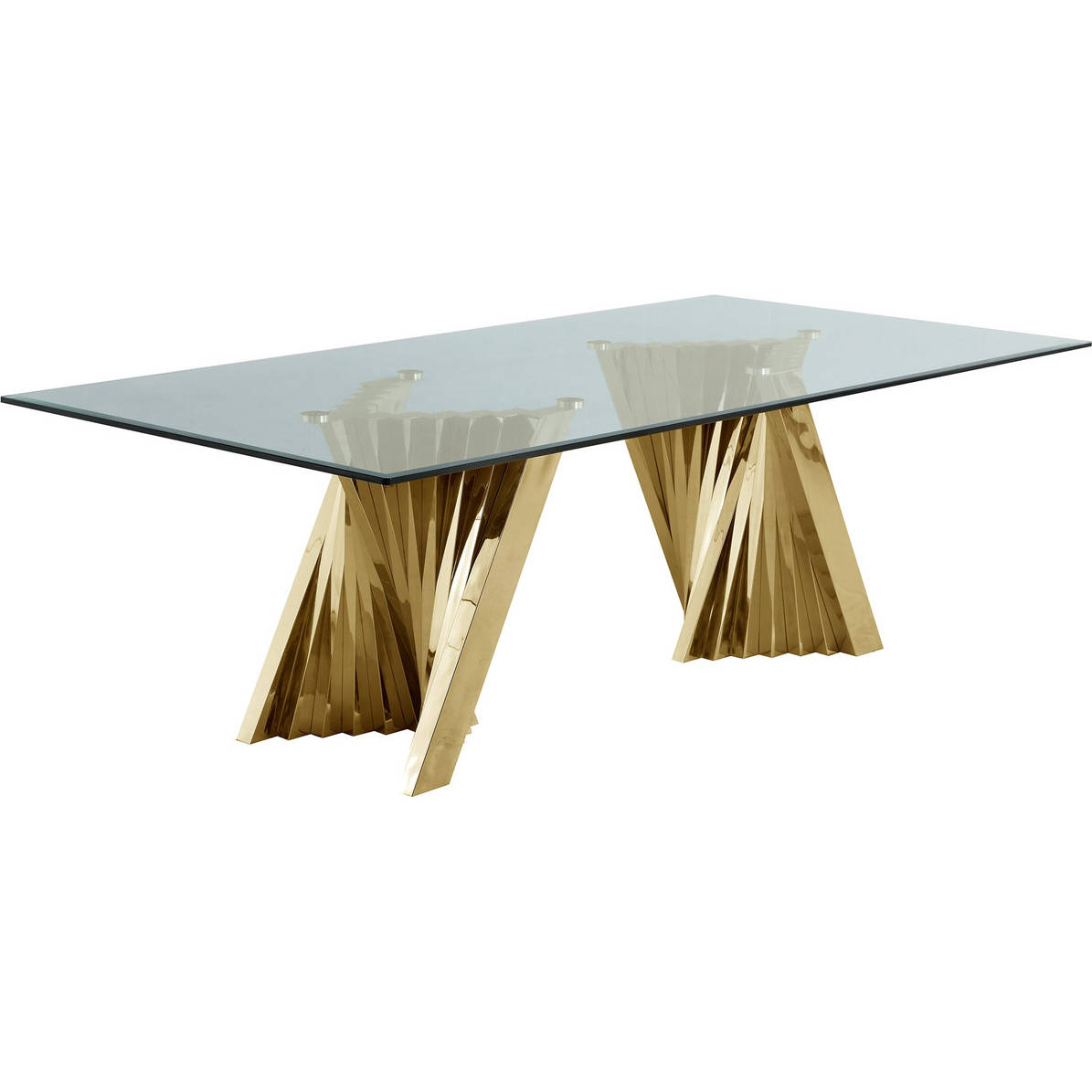 Best Quality D04 94" Dining Table in Tempered Glass & Gold Stainless Steel