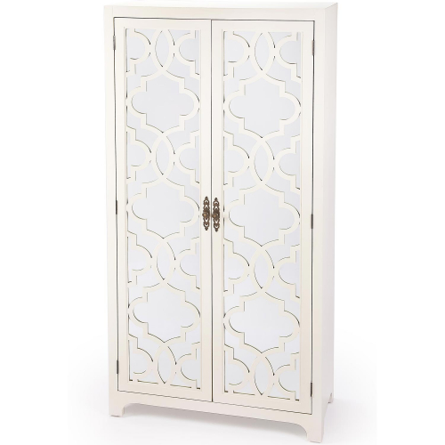 Butler Specialty Morjanna Tall Cabinet in White Wood & Mirror