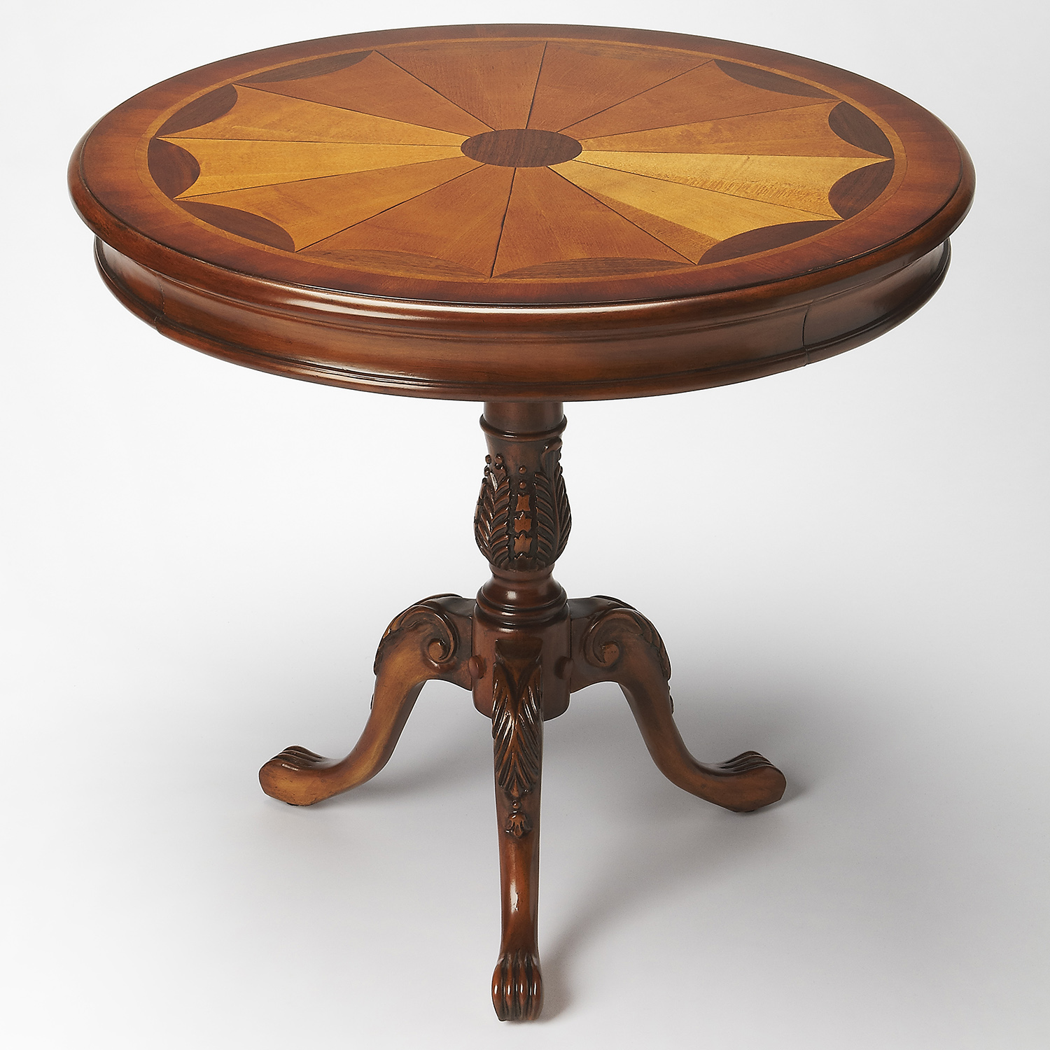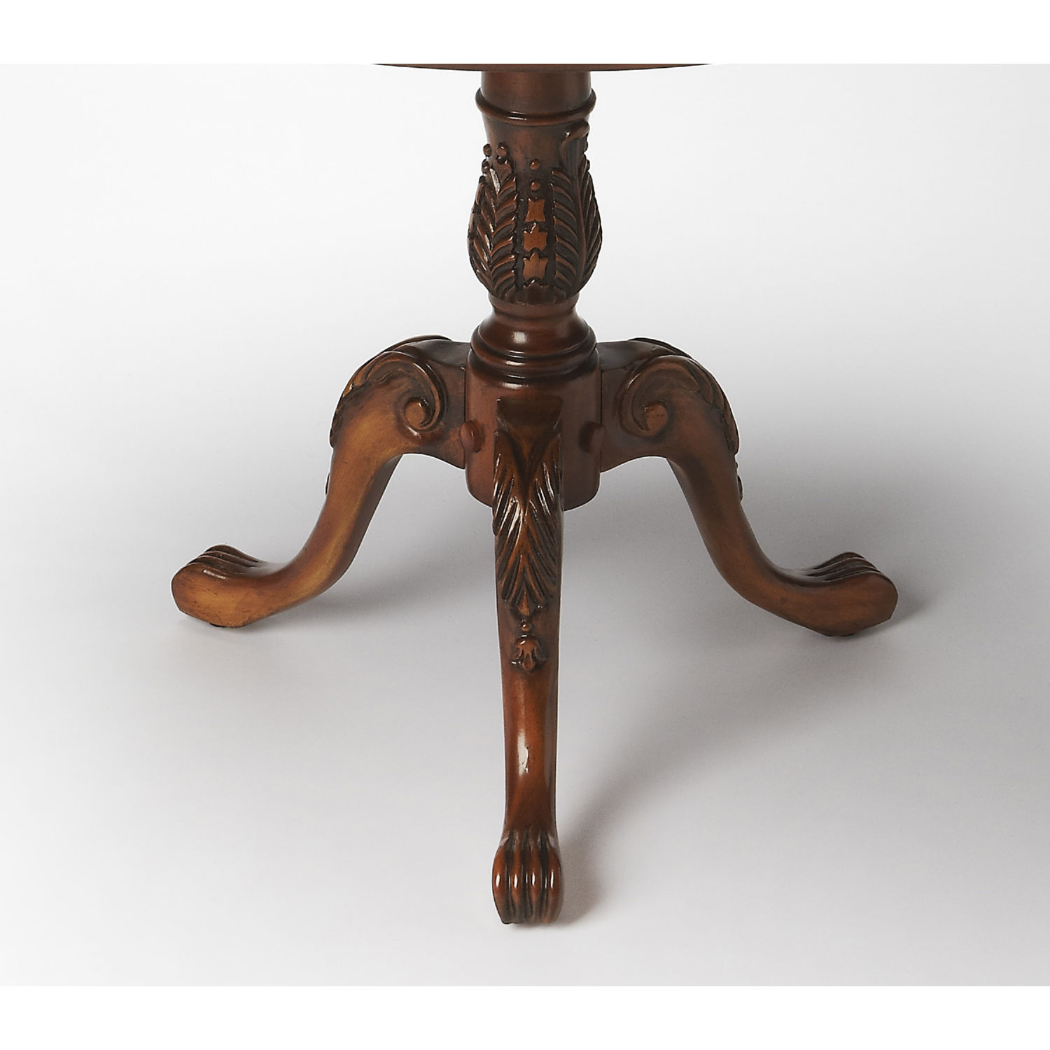 • Gorgeous pedestal base with resin applique detailing on cabriole style legs and claw feet