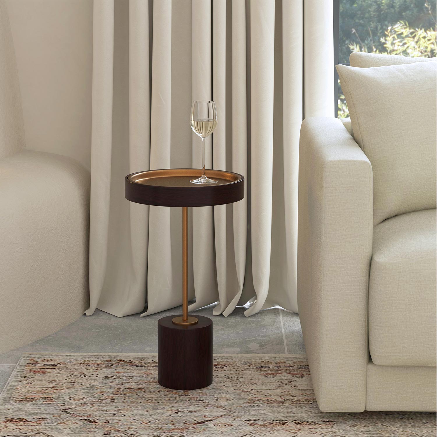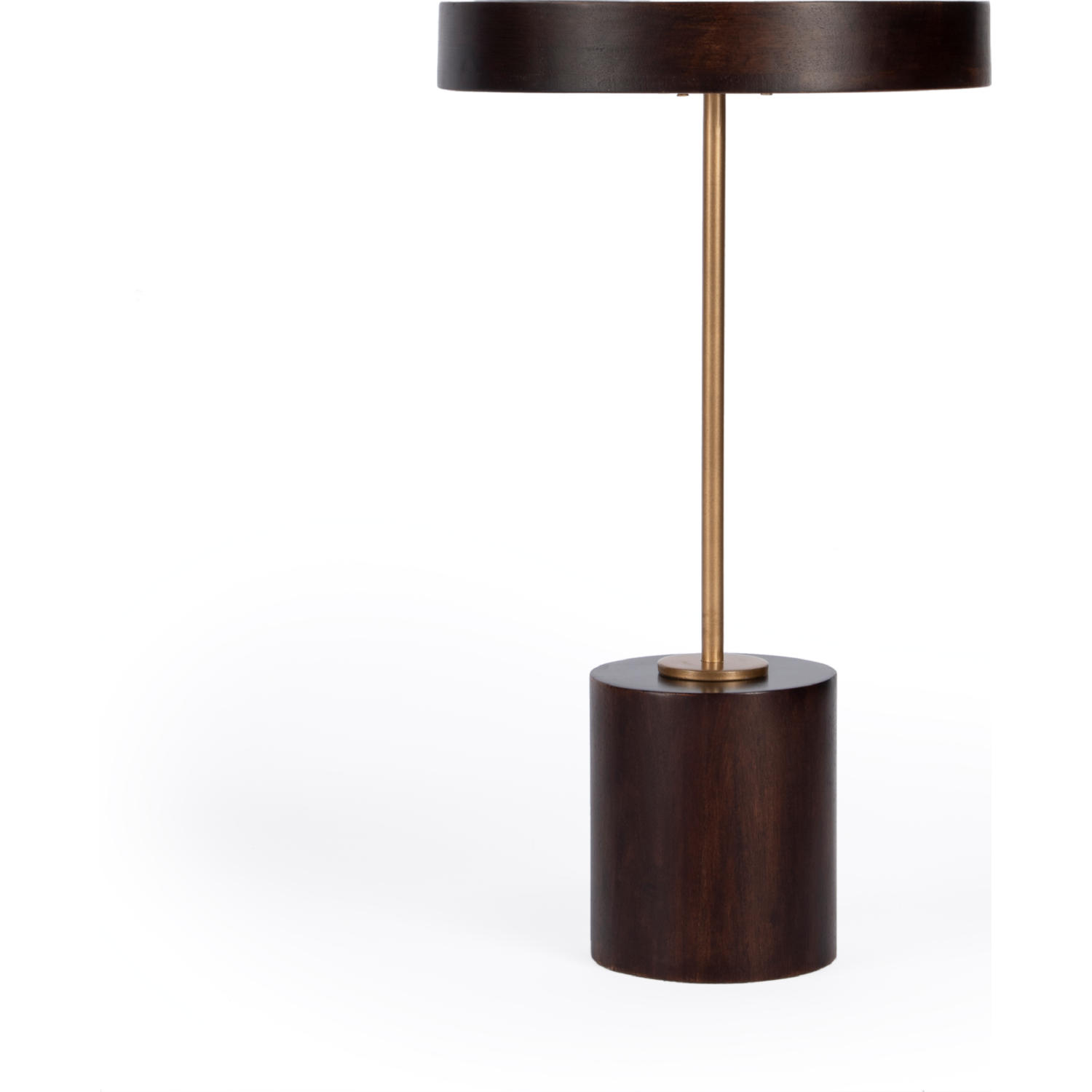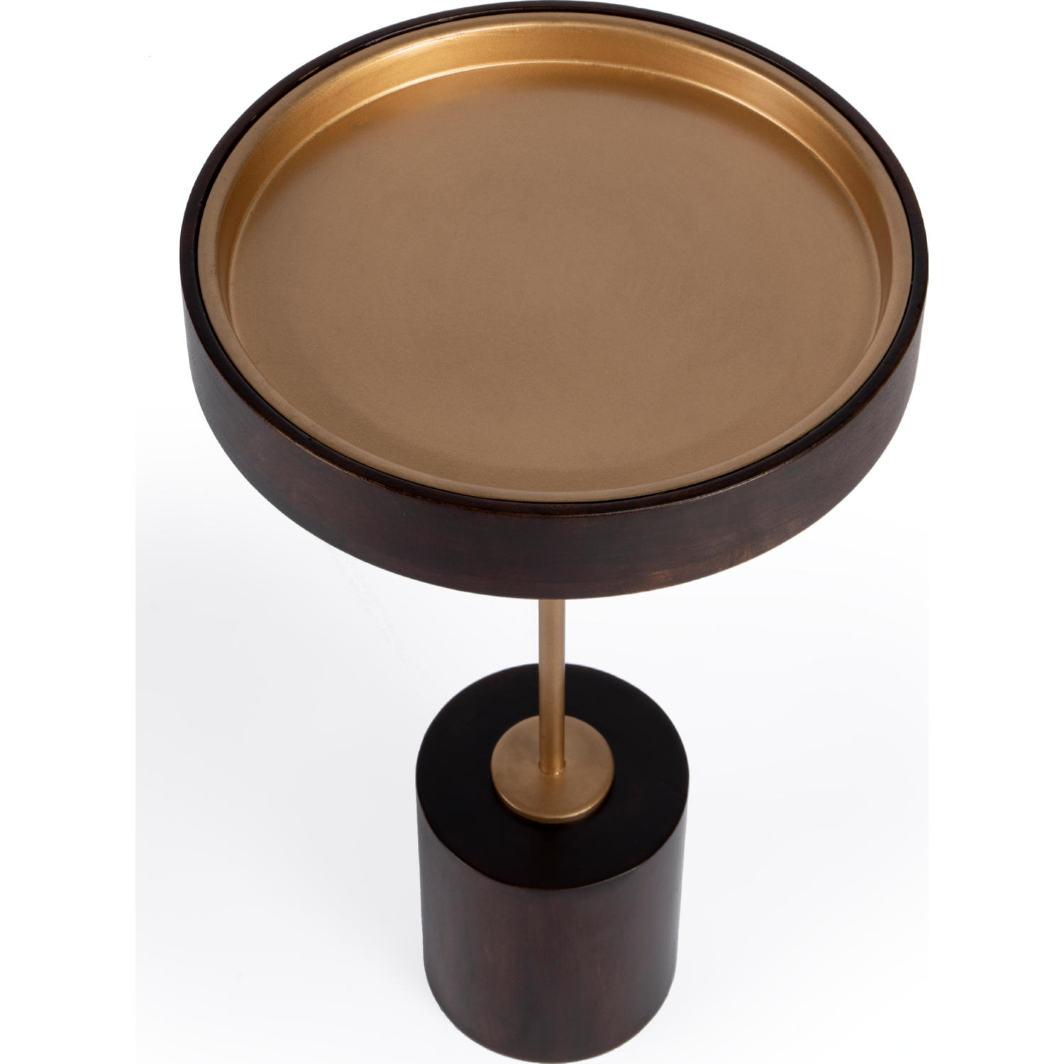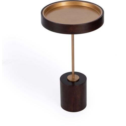 Butler Specialty 5625025 Shen Pedestal Side Table Dark Brown Wood Gold Metal