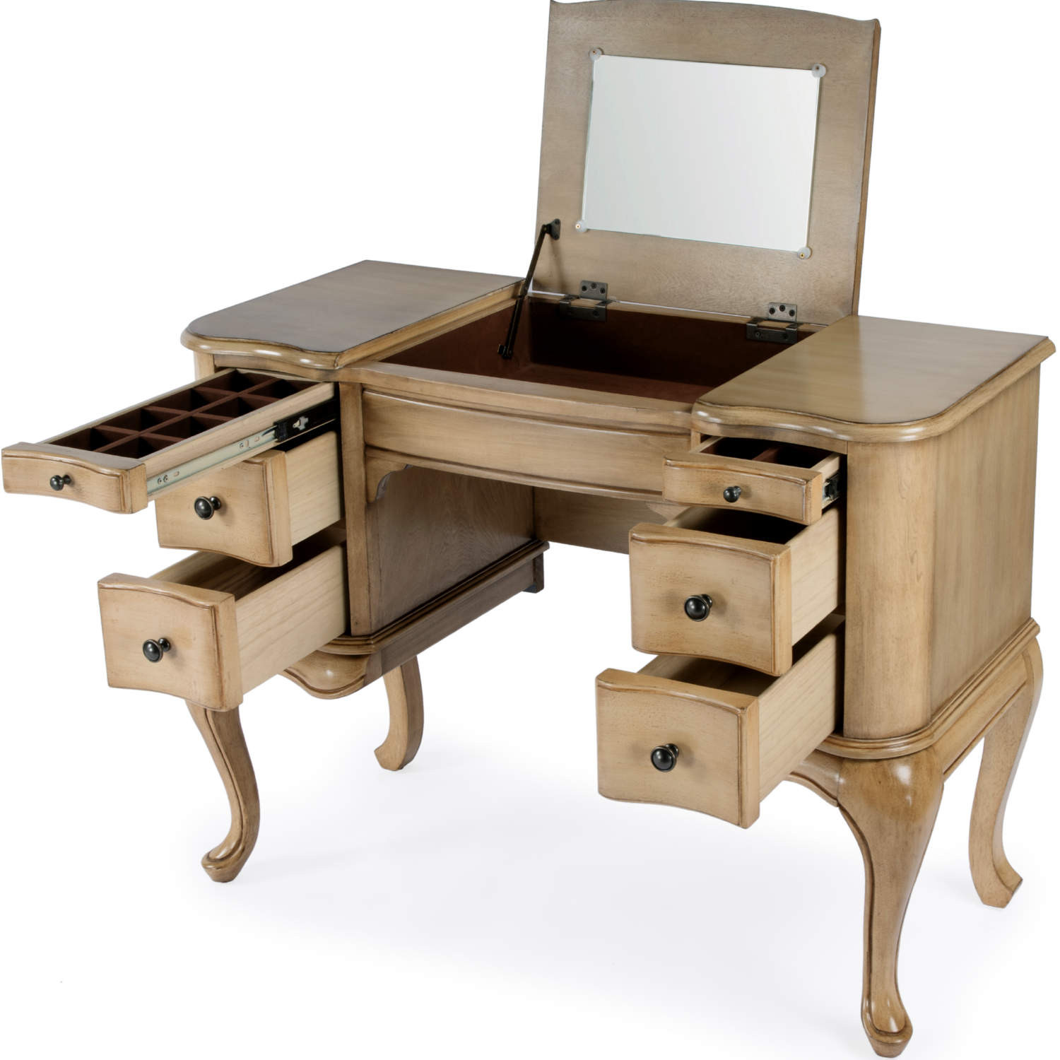 Butler Specialty 735424 Charlotte Bedroom Vanity Desk Storage Beige Finish Wood