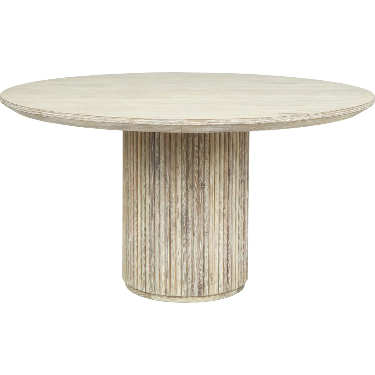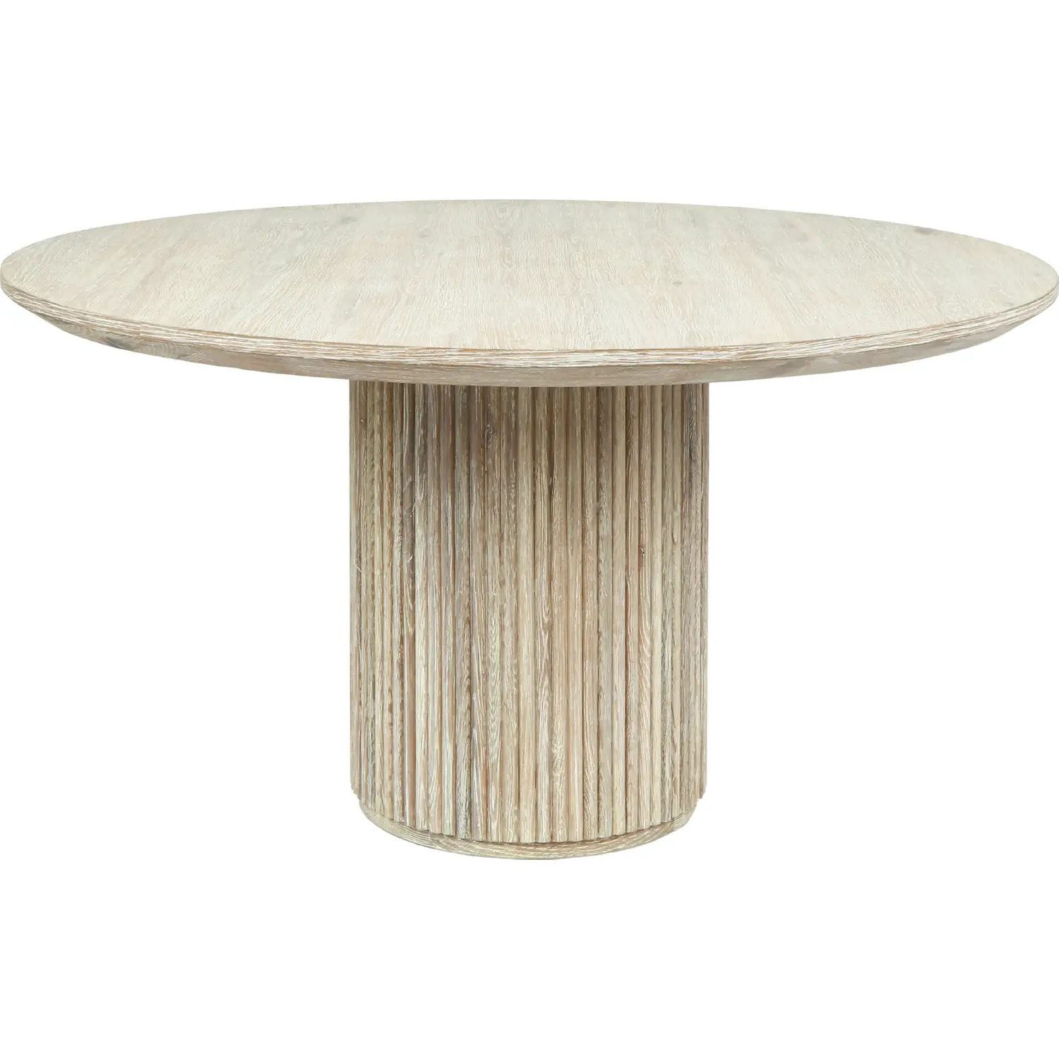 Classic Home Vander 55" Round Pedestal Dining Table in Washed Cream Oak Veneer