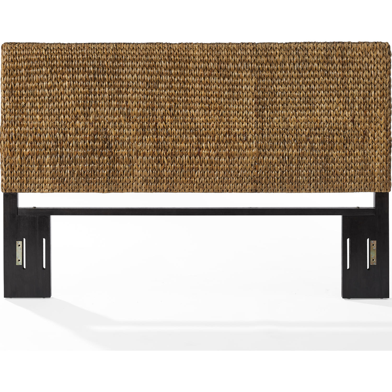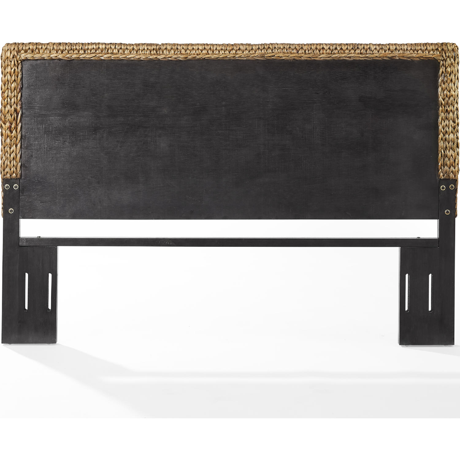 • King size flat panel headboard is covered in handwoven natural water hyacinth seagrass