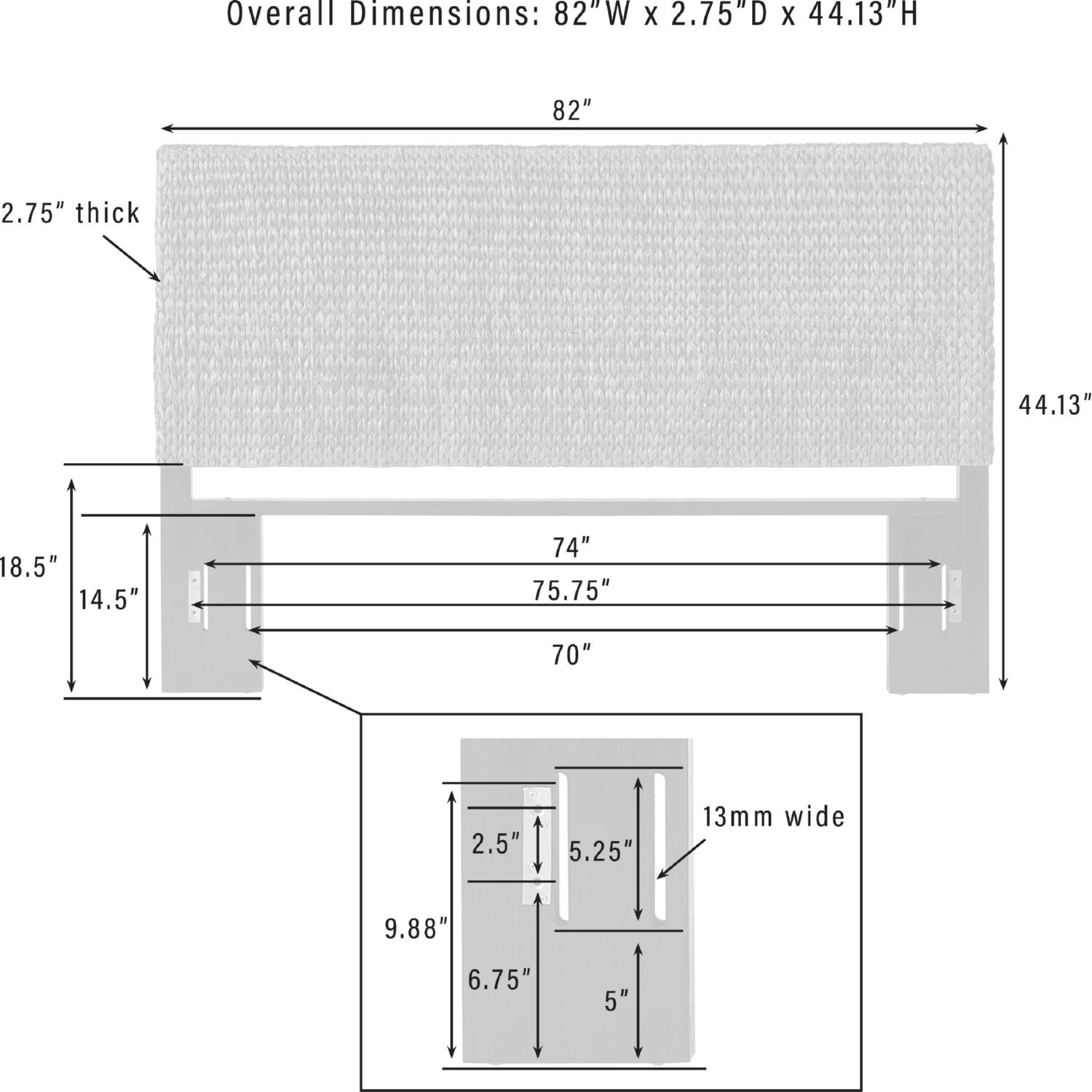 Dimensions: 82"W x 2.75"D x 44.13"H, Floor Clearance: 14.5"