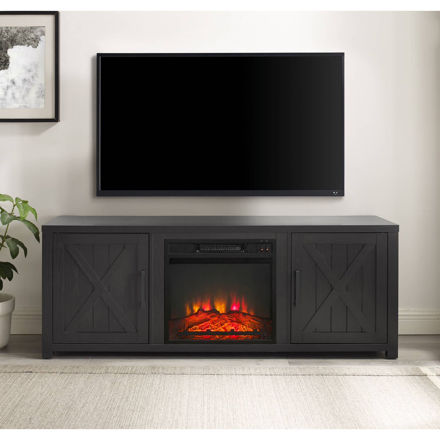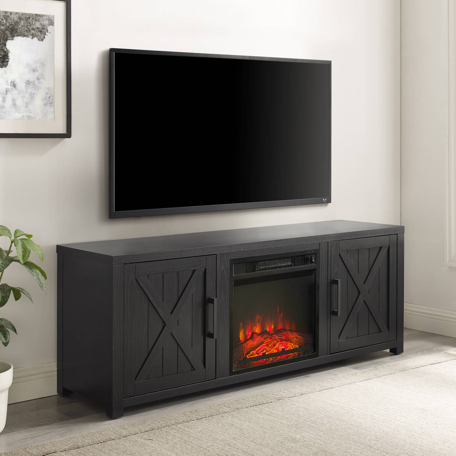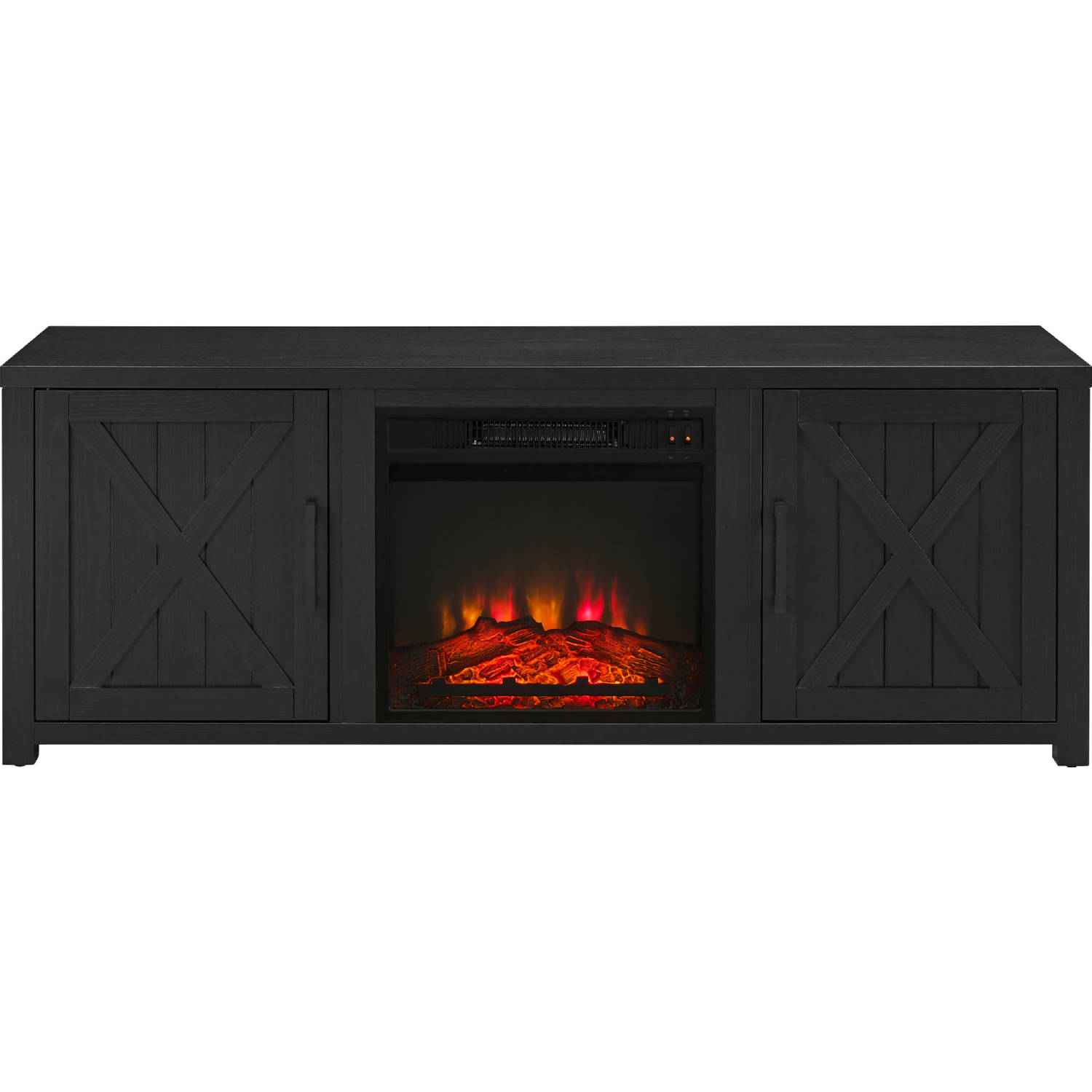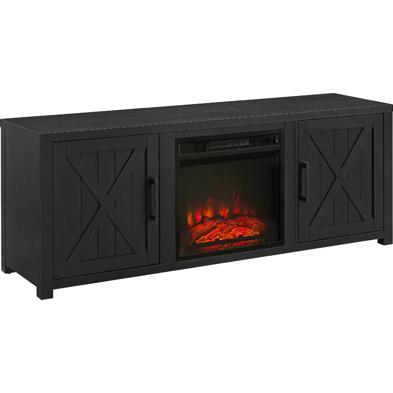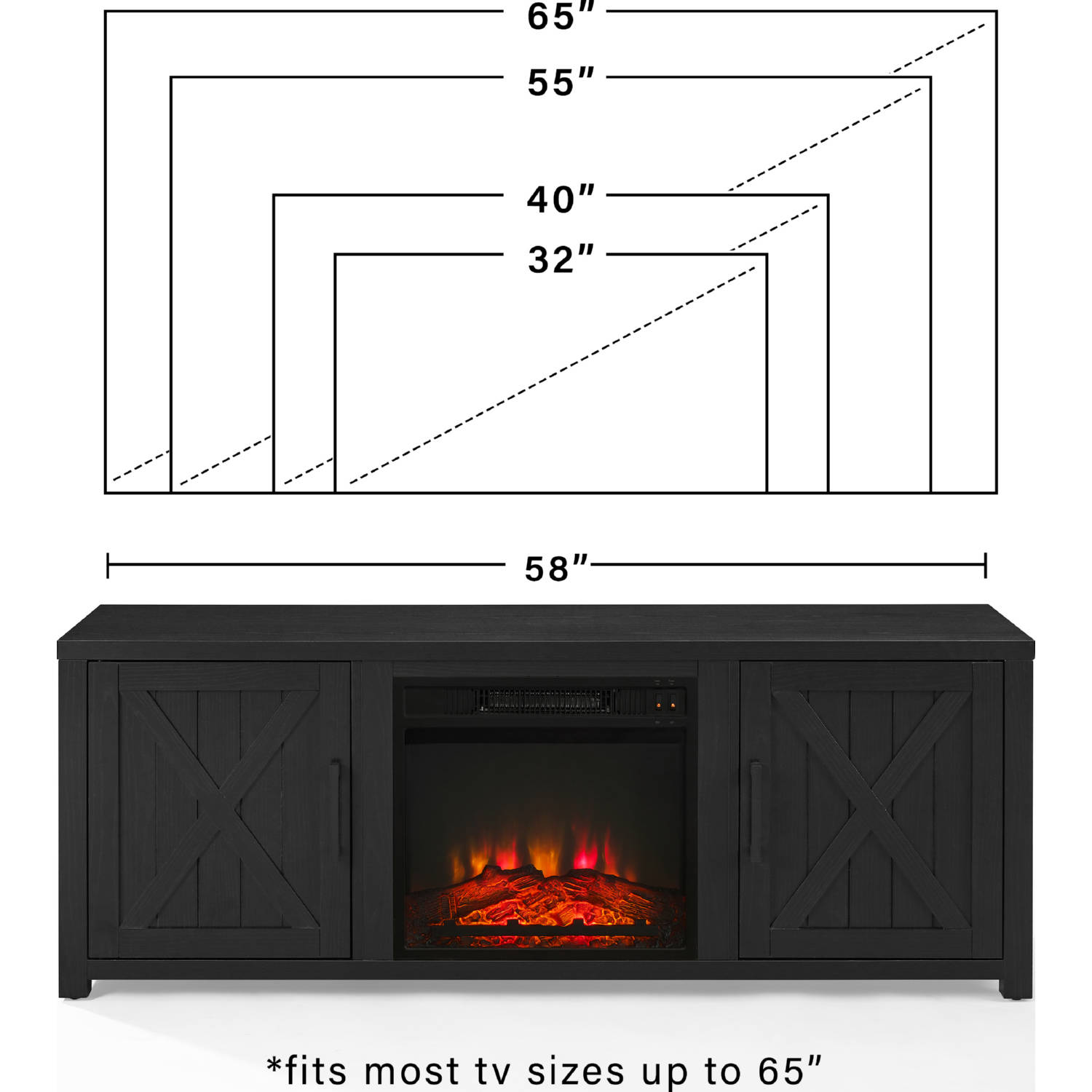 Crosley KF100758BK Gordon 58" Low Profile TV Stand Fireplace Black Finish