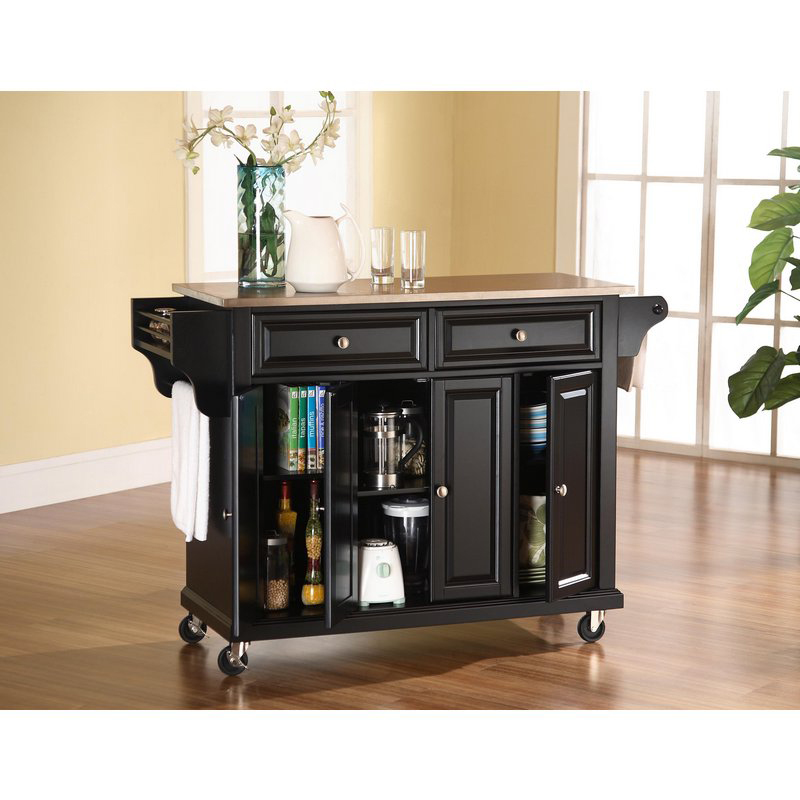 Crosley Kitchen Cart Island in Black Finish with Stainless Steel Top