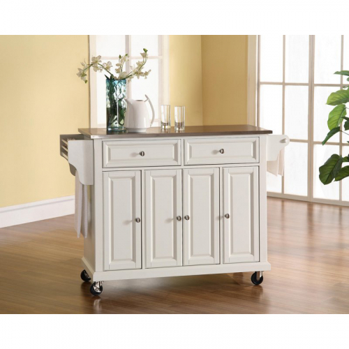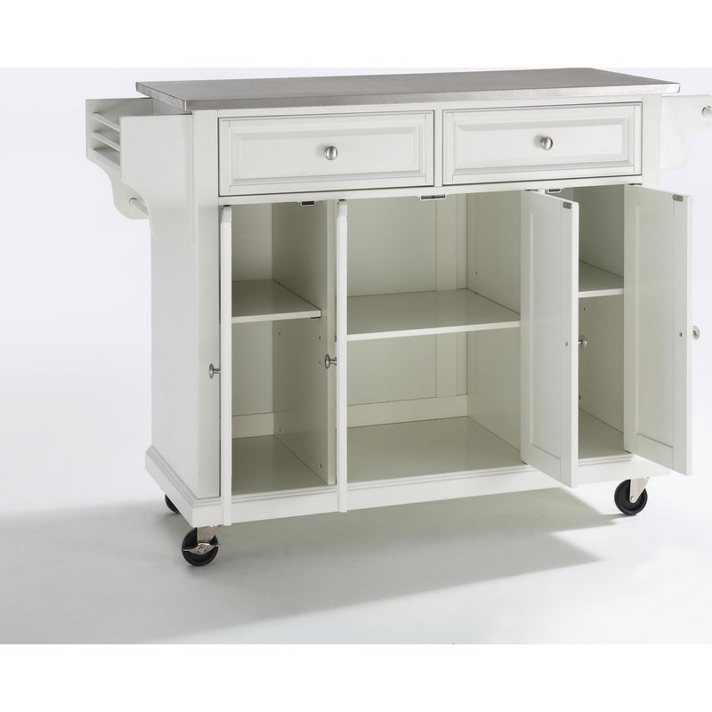 Crosley Kitchen Cart Island in White Finish with Stainless Steel Top