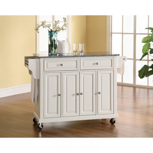 Crosley Kitchen Cart Island in White Finish with Salt & Pepper Granite Top