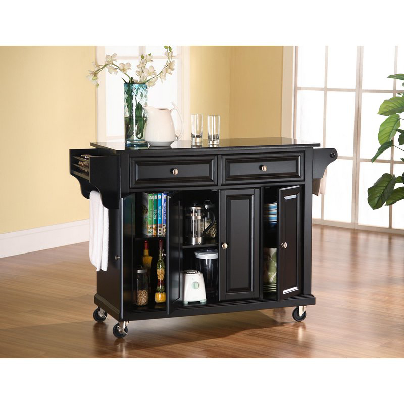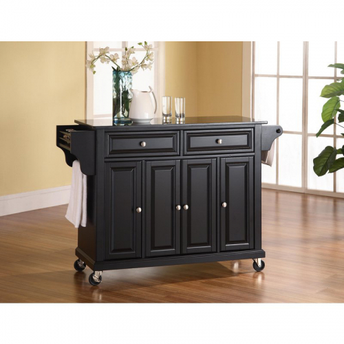 Crosley KF30004EBK Kitchen Cart Island Black Finish Solid Black Granite Top