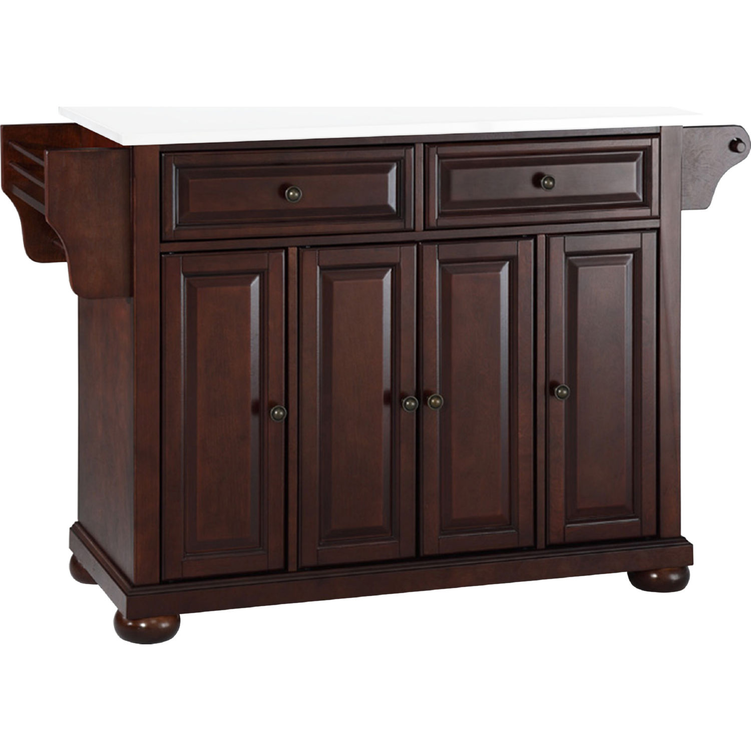 Crosley KF30005AMA Alexandria Kitchen Island Cart Mahogany Finish White Granite Top