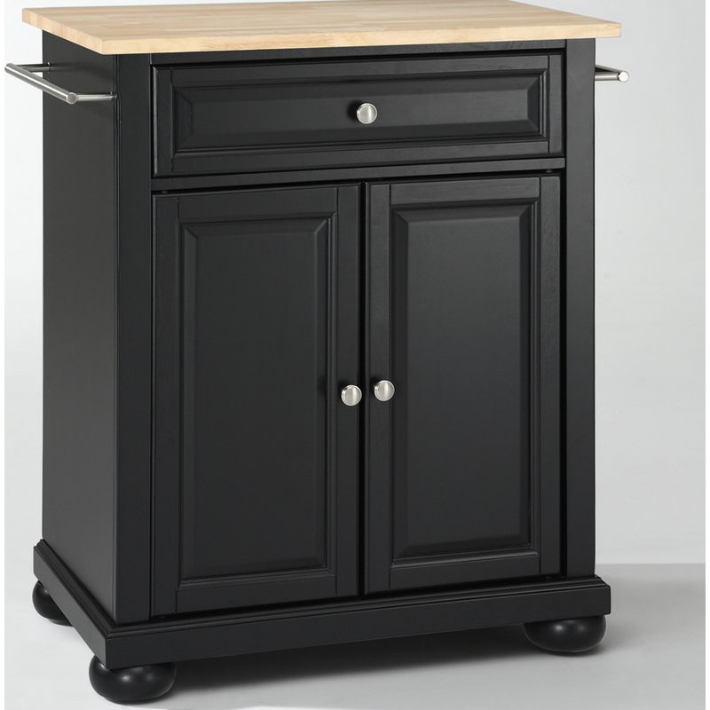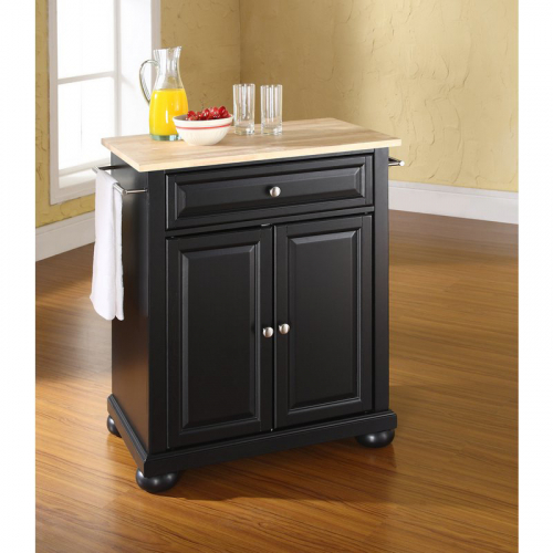 Crosley KF30021ABK Cuisine Alexandria 28" Kitchen Island Black Finish Natural Wood Top