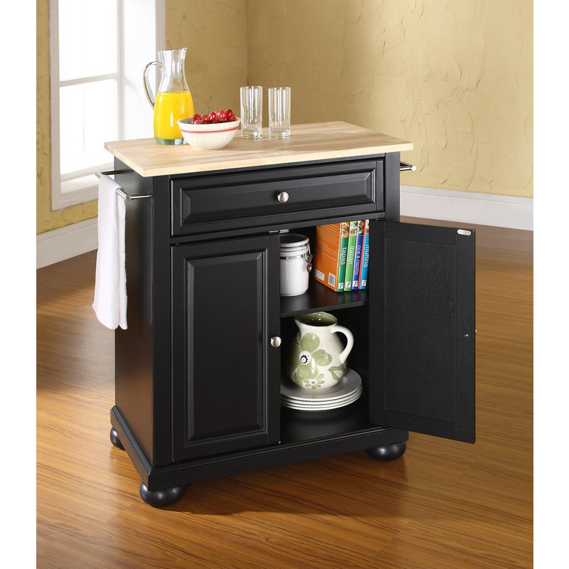Crosley Cuisine Alexandria 28" Kitchen Island in Black Finish with Natural Wood Top