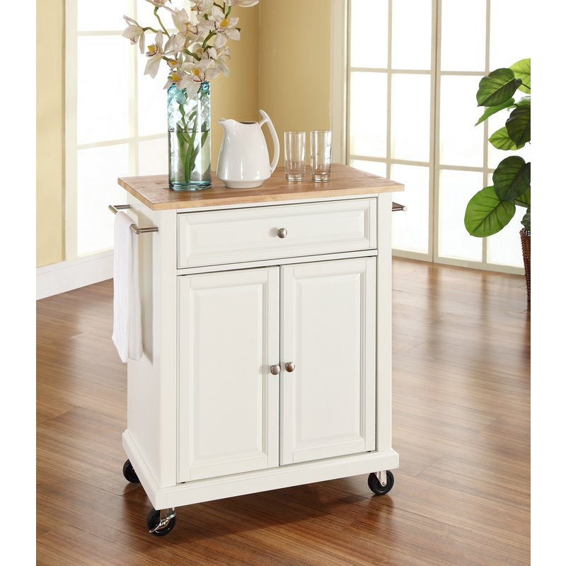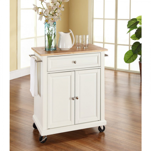 Crosley Cuisine Compact 28" Kitchen Cart Island in White Finish with Natural Wood Top