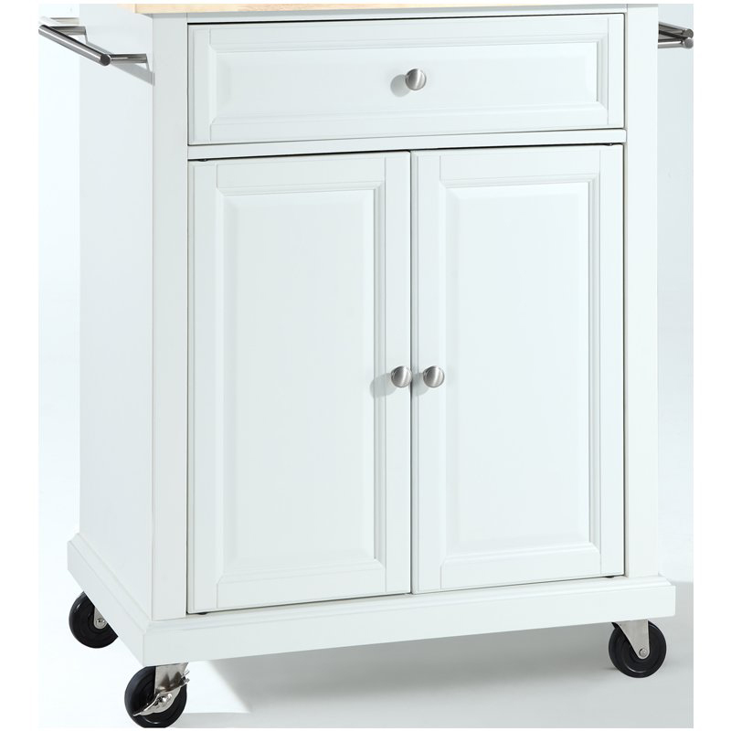 Crosley KF30021EWH Cuisine Compact 28" Kitchen Cart Island White Finish Natural Wood Top