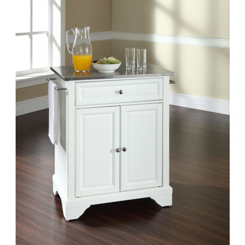 Crosley Cuisine Lafayette 28" Kitchen Island in White Finish with Stainless Steel Top