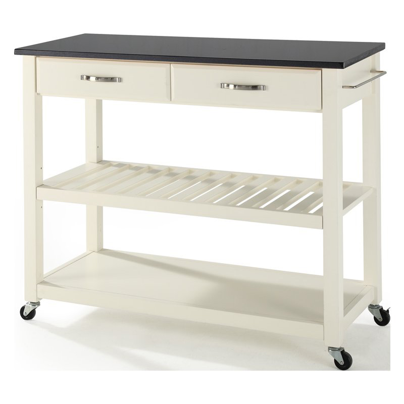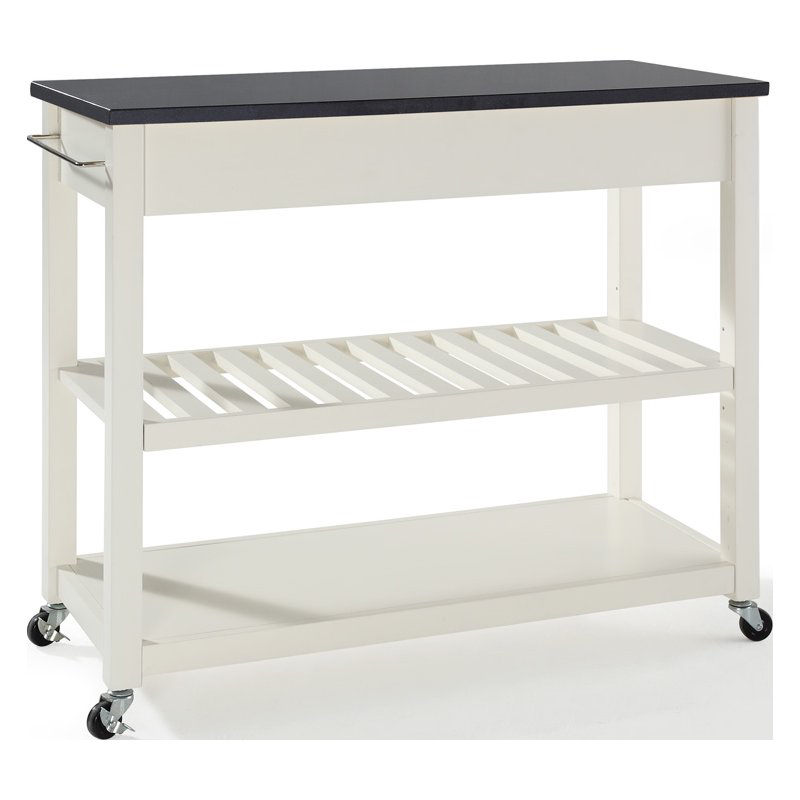 Crosley Kitchen Prep Cart Island in White with Solid Black Granite Top