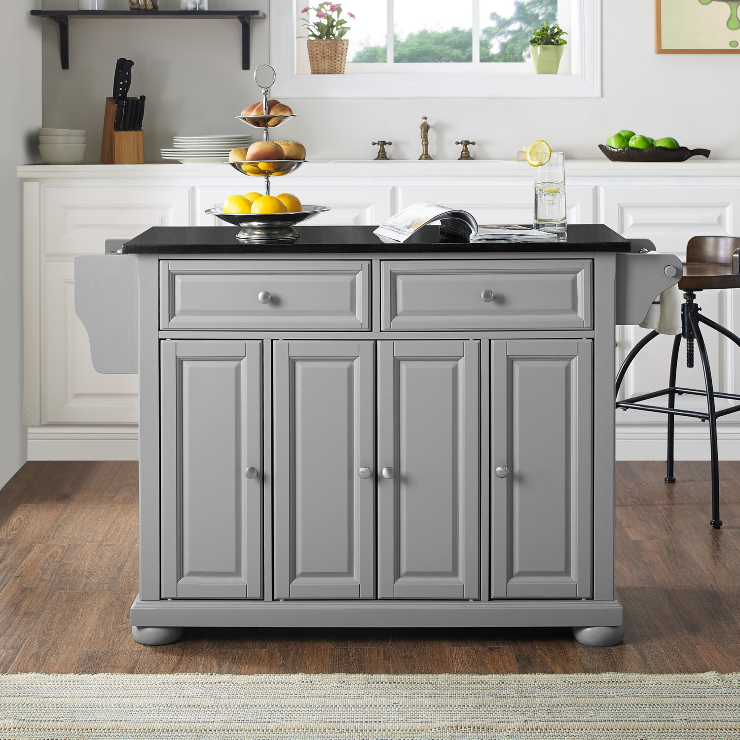 Crosley KF30204AGY Alexandria Kitchen Island Vintage Grey Finish Black Granite Top