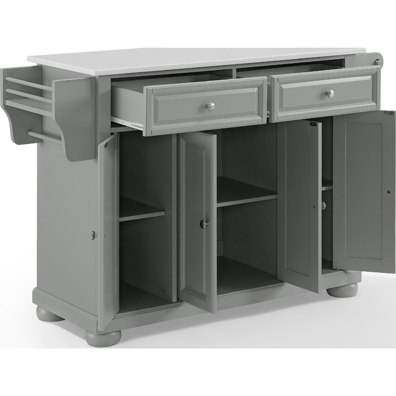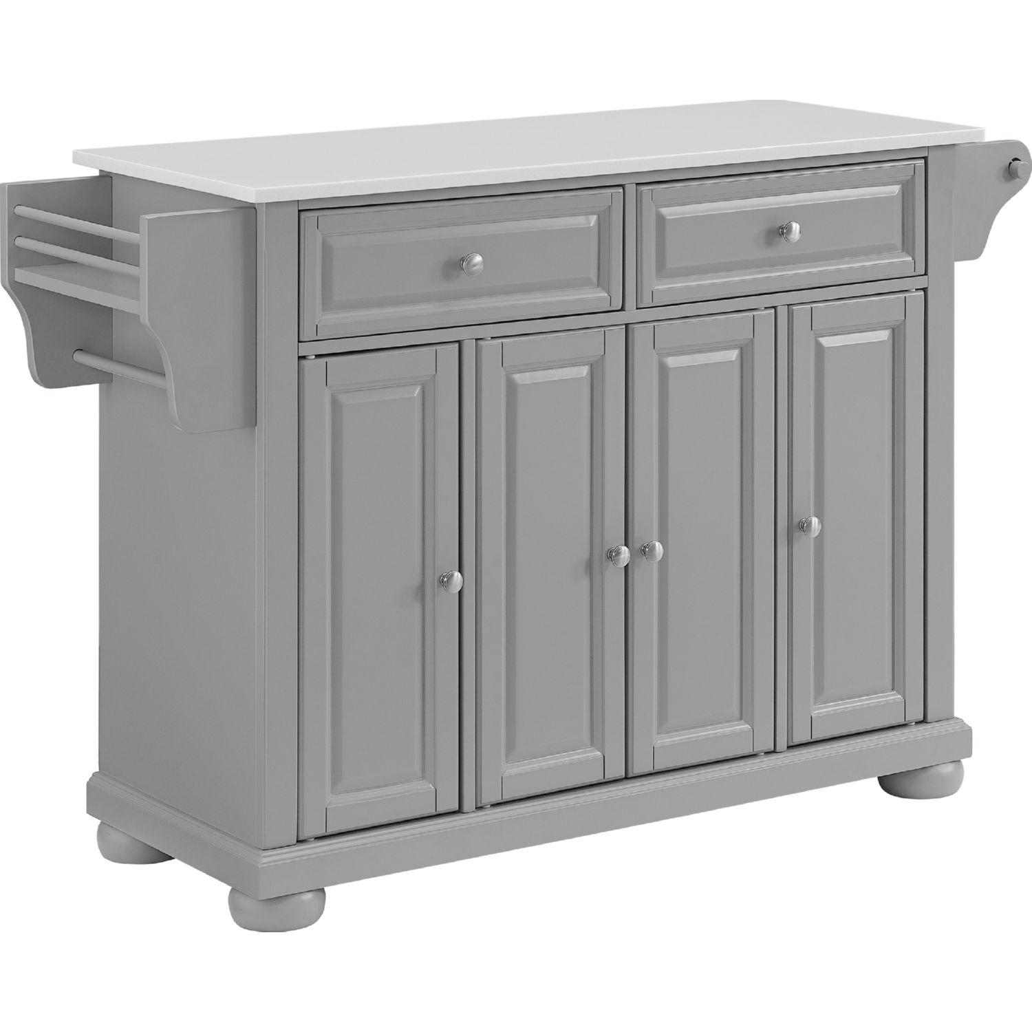 Crosley KF30205AGY Alexandria Kitchen Island Cart Gray Finish White Granite Top