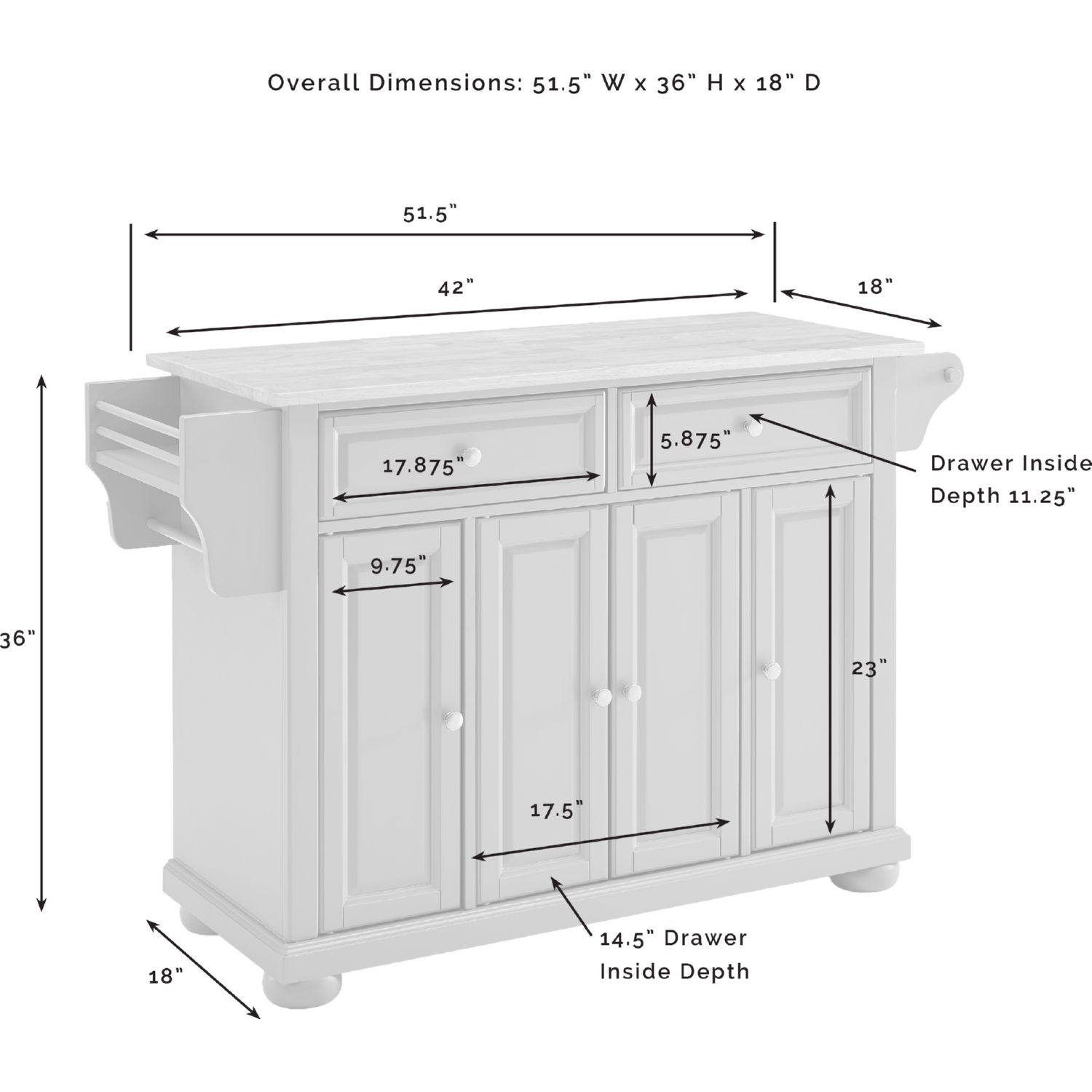 Dimensions: 51.5"W x 18"D x 36"H