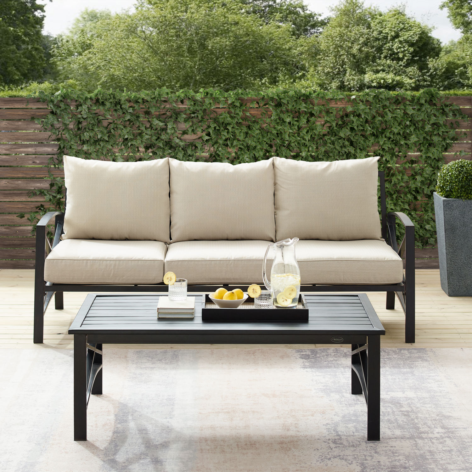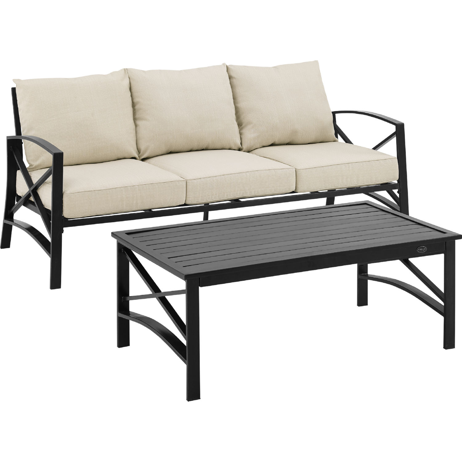 Crosley Kaplan 2 Piece Outdoor Sofa & Coffee Table Set in Oil Rubbed Bronze & Oatmeal Cushions