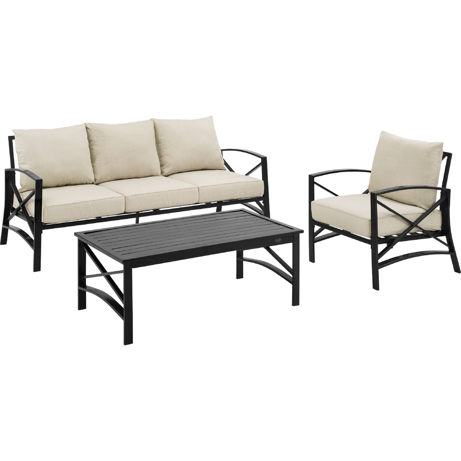 Crosley Kaplan 3 Piece Outdoor Sofa Set in Oil Rubbed Bronze & Oatmeal Cushions
